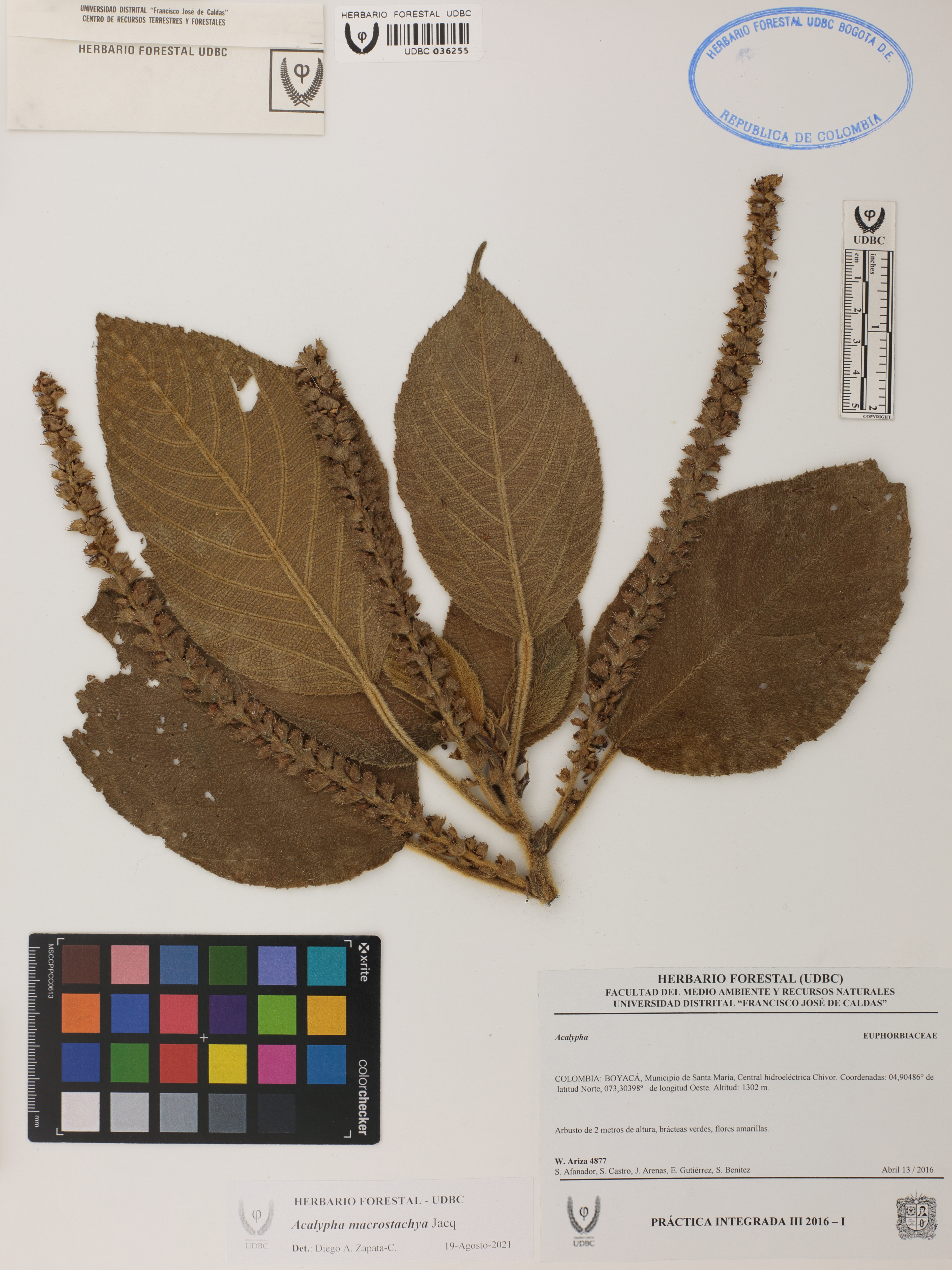 Fotografía del ejemplar Ariza, W. 4877, determinado como Acalypha macrostachya en el año 2021