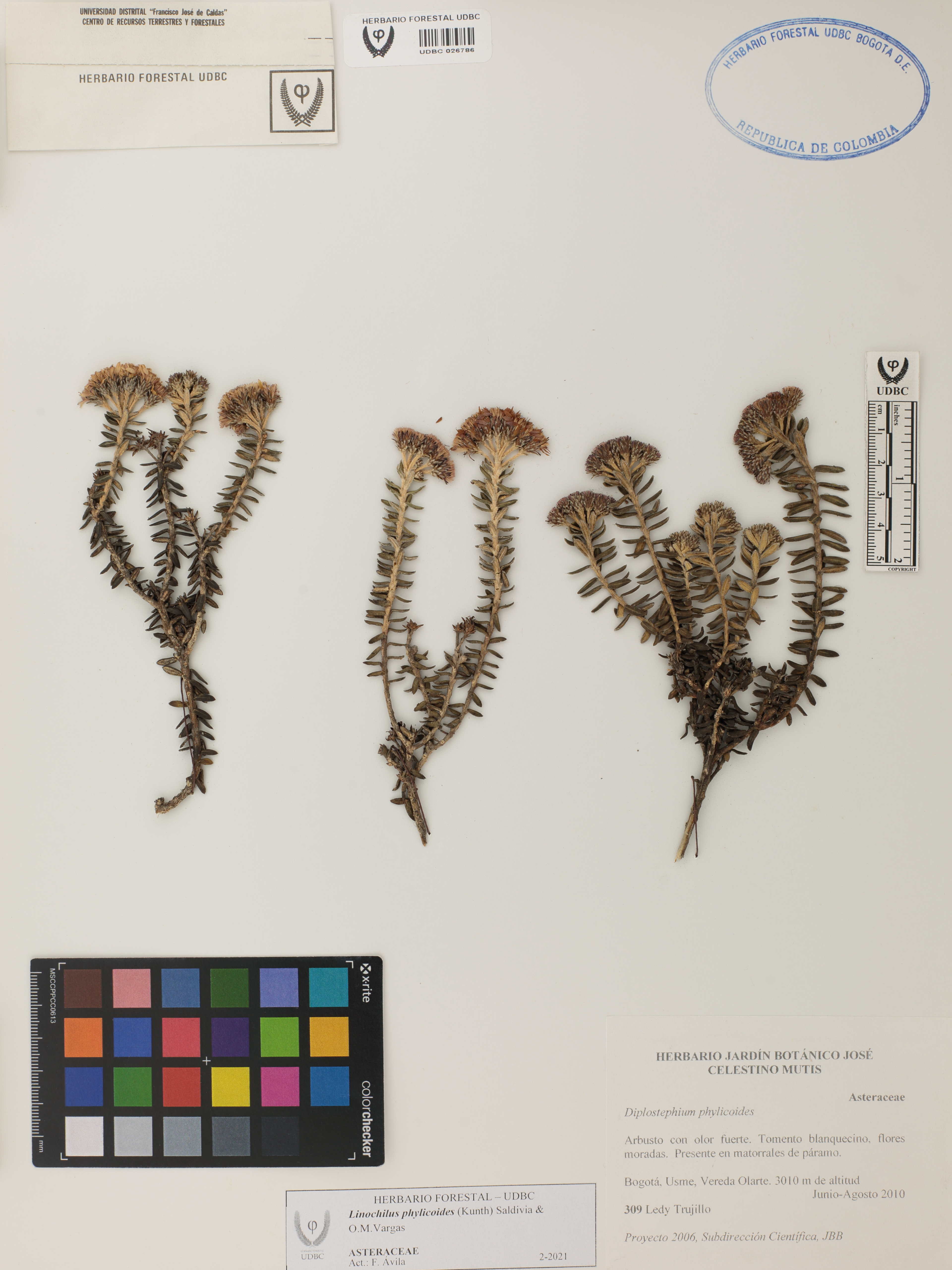 Fotografía del ejemplar Trujillo, L. 309, determinado como Linochilus phylicoides