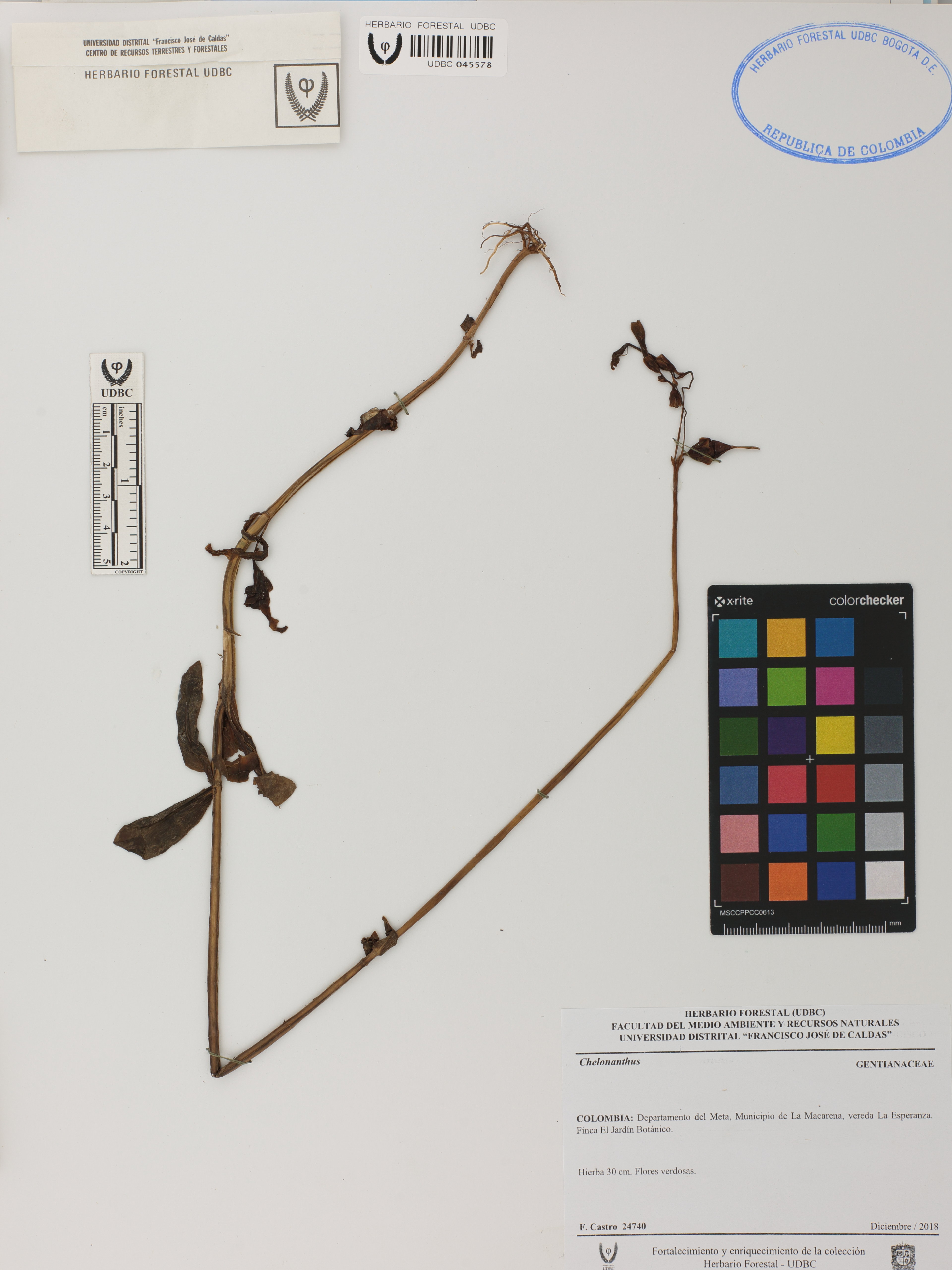 Fotografía del ejemplar Castro, F. 24740, determinado como Chelonanthus sp.