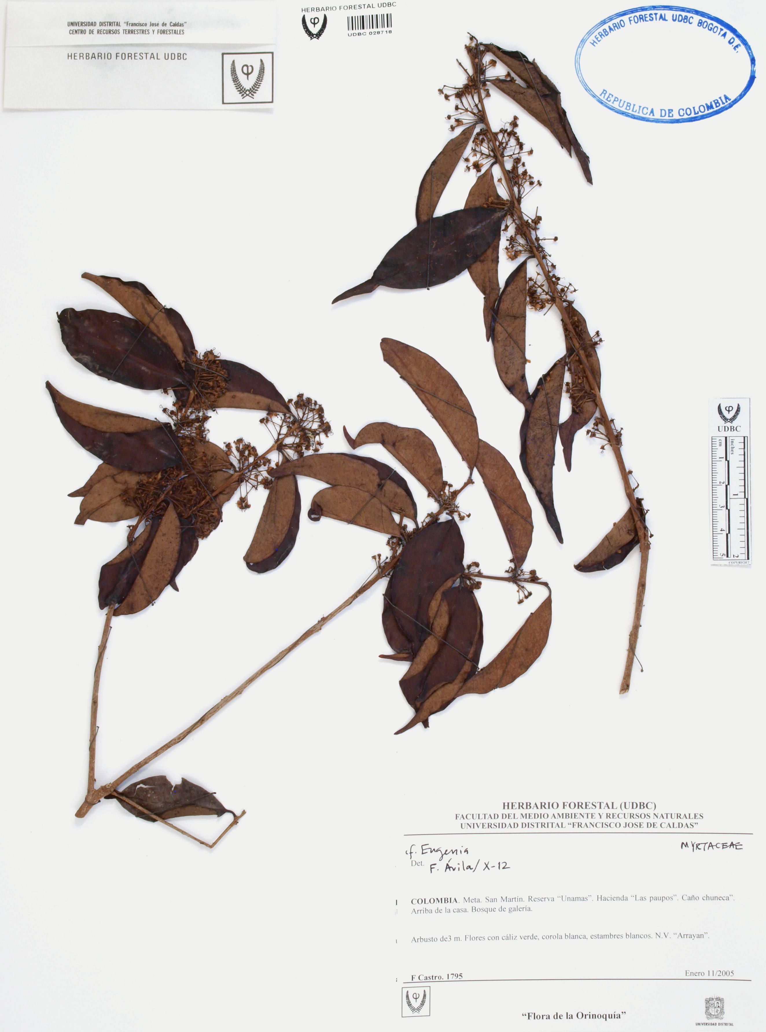 Fotografía del ejemplar Castro, F. 1795, determinado como Eugenia sp. en el año 2012