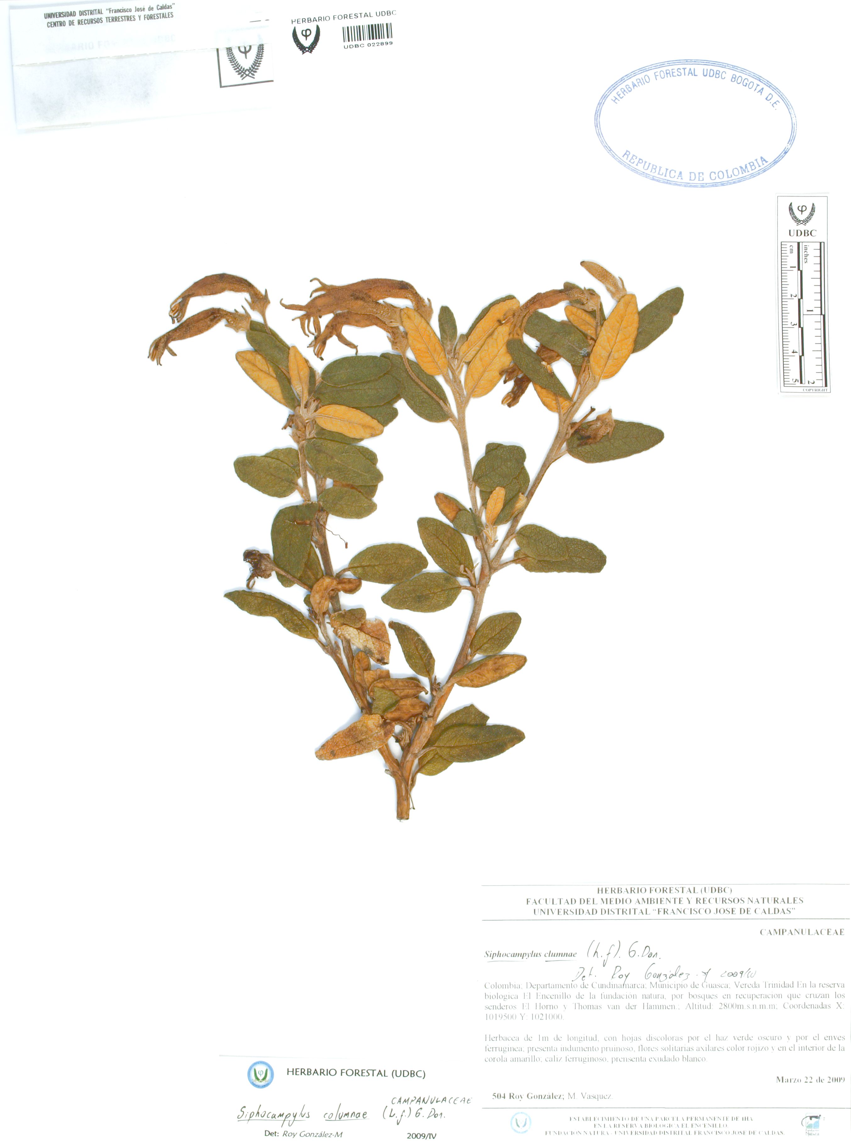 | dc.description | Fotografía del ejemplar González, R. 504, determinado como Siphocampylus columnae en el año 2009 | |