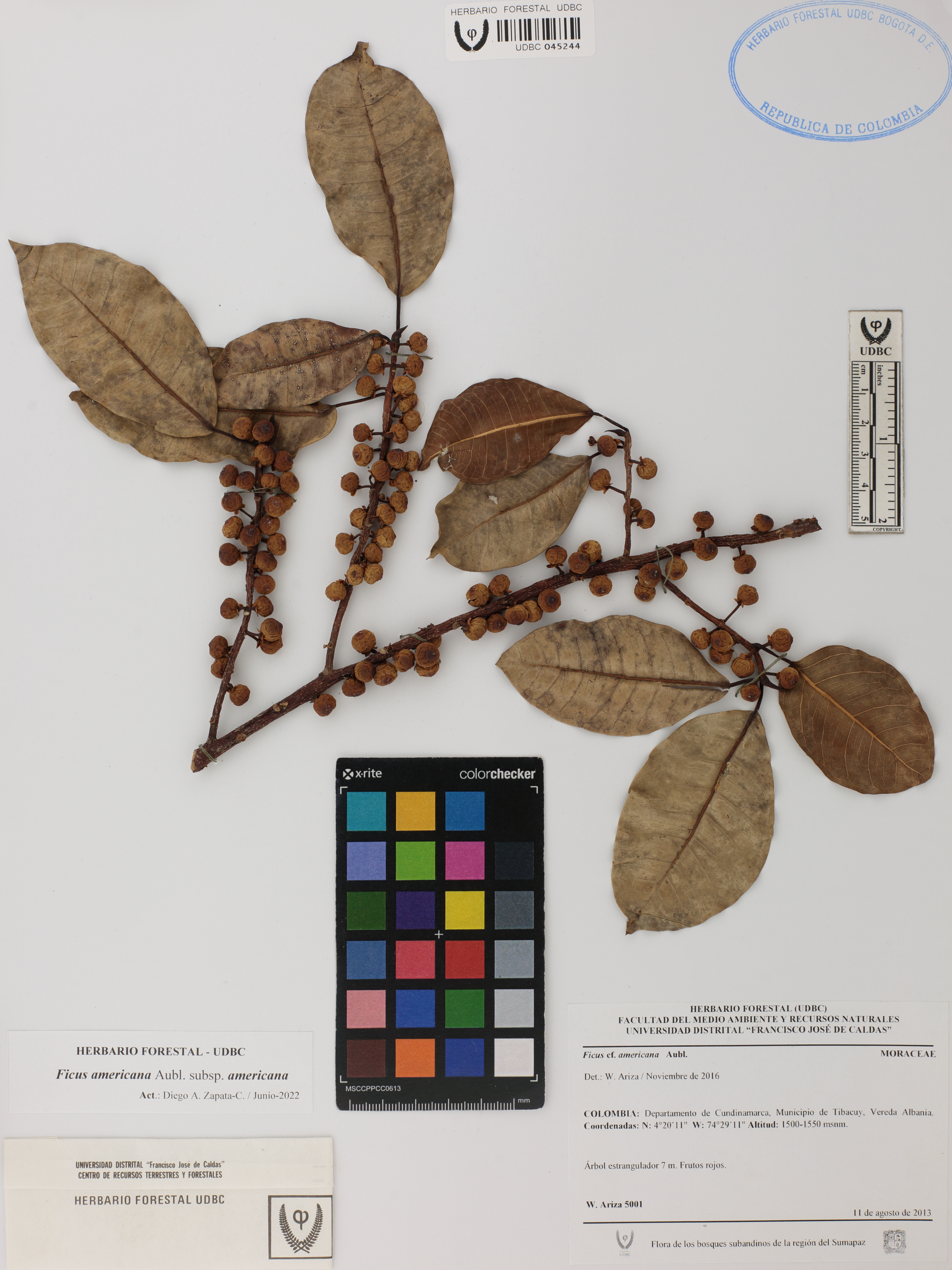 Fotografía del ejemplar Ariza-Cortés, W. 5001, determinado como Ficus americana subsp. americana en el año 2016