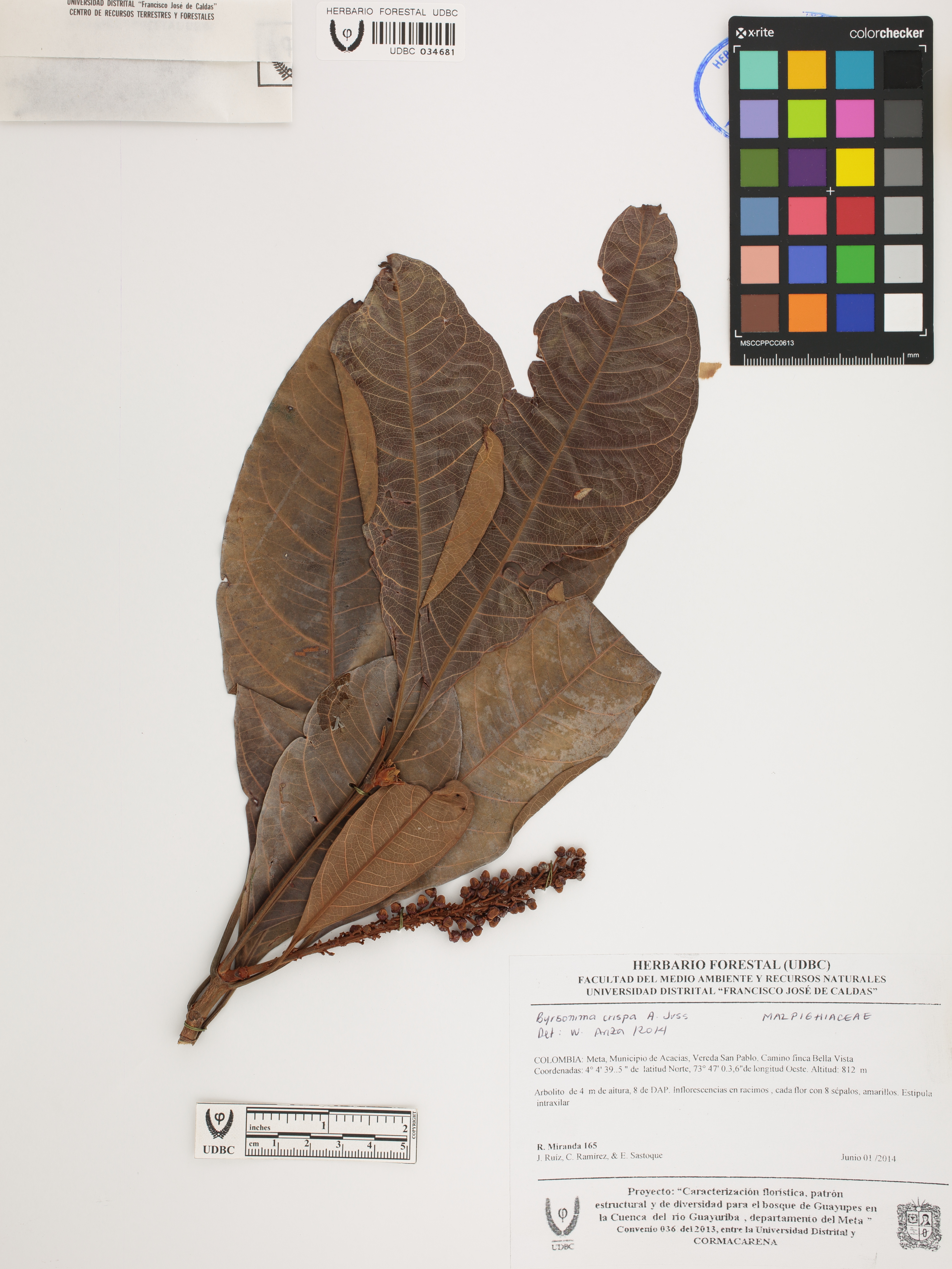 Fotografía del ejemplar Miranda, R. 165, determinado como Byrsonima crispa en el año 2014