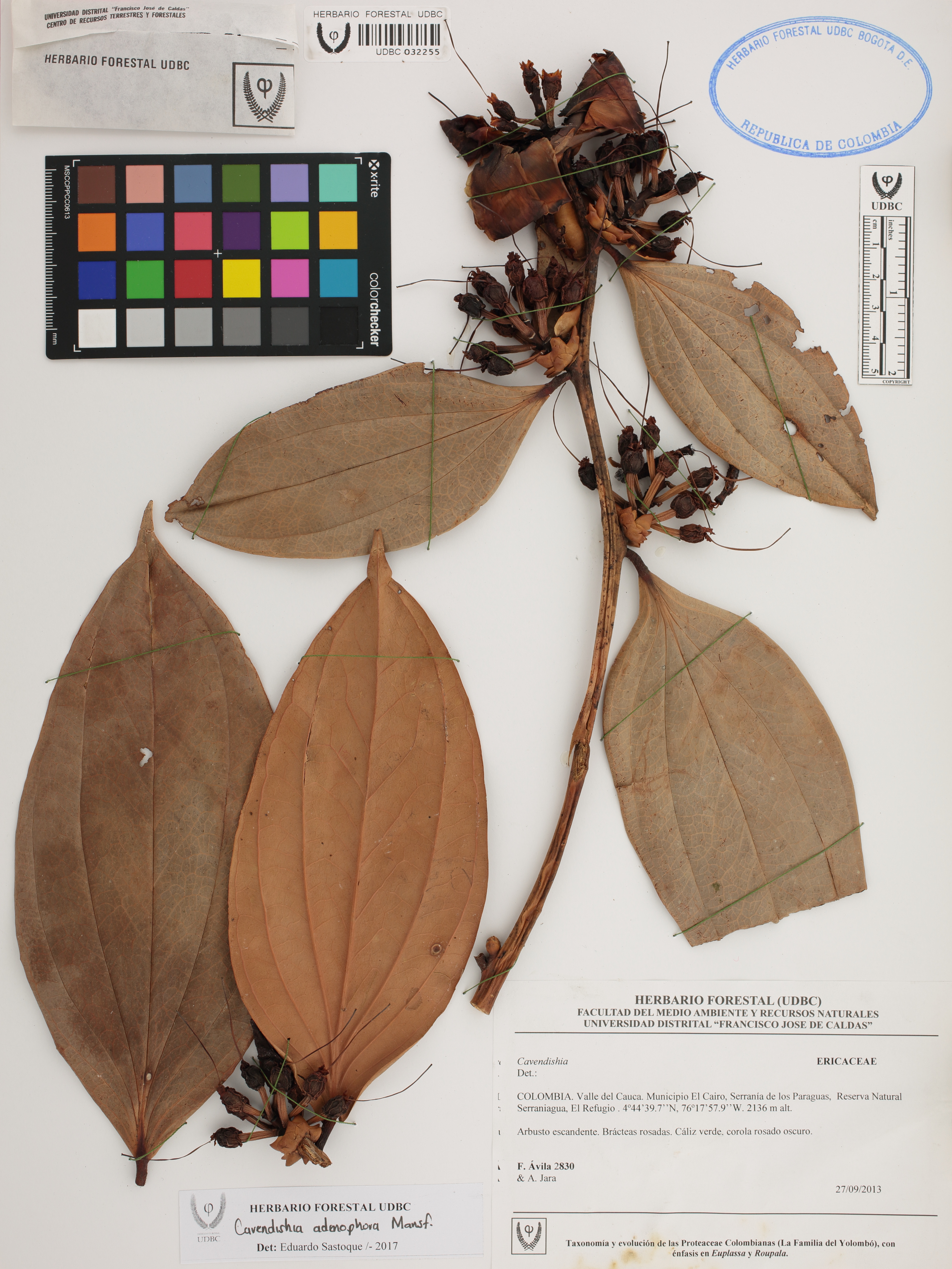 Fotografía del ejemplar Ávila, F. 2830, determinado como Cavendishia adenophora en el año 2017