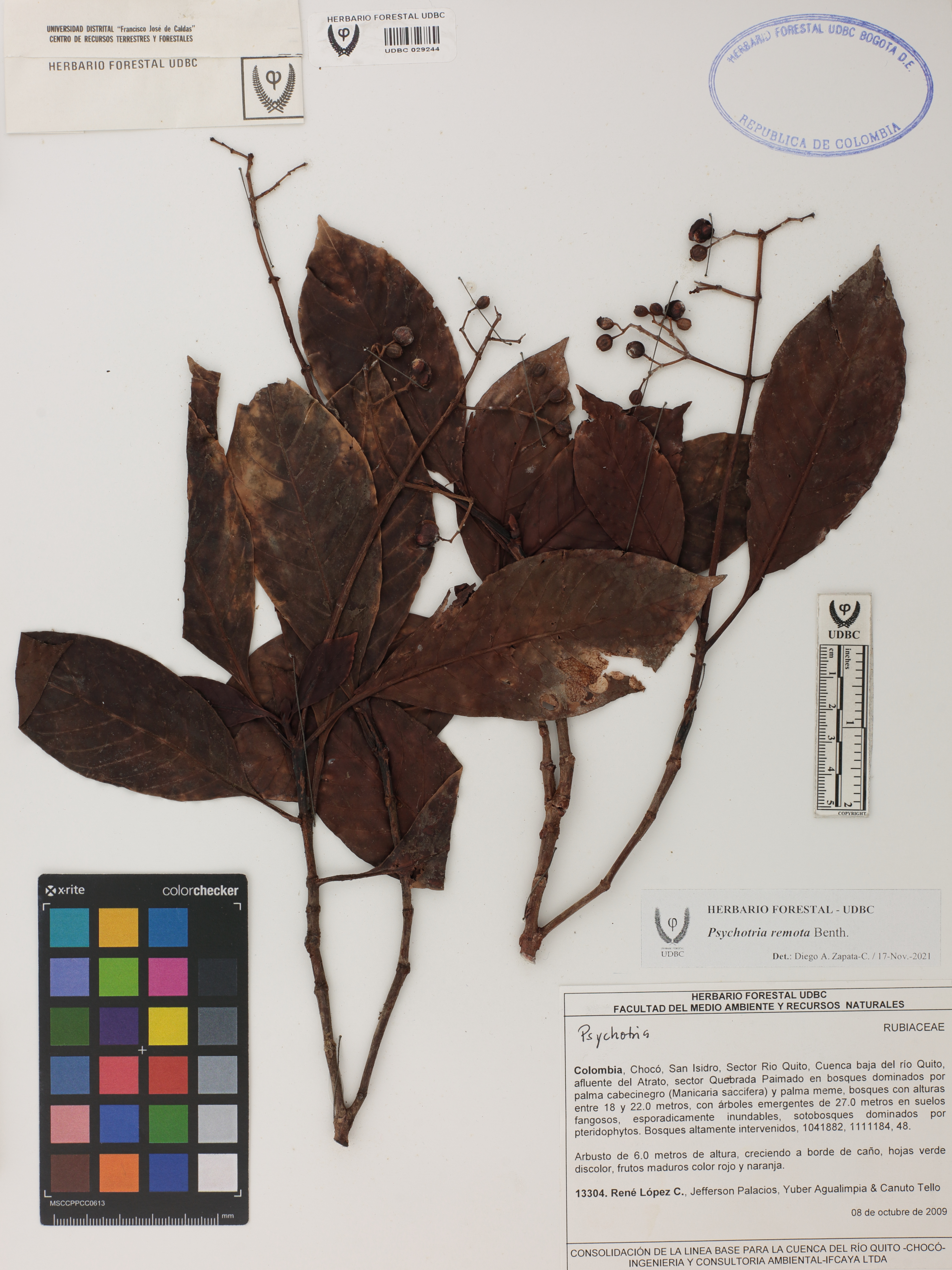 Fotografía del ejemplar López, R. 13304, determinado como Psychotria remota en el año 2021