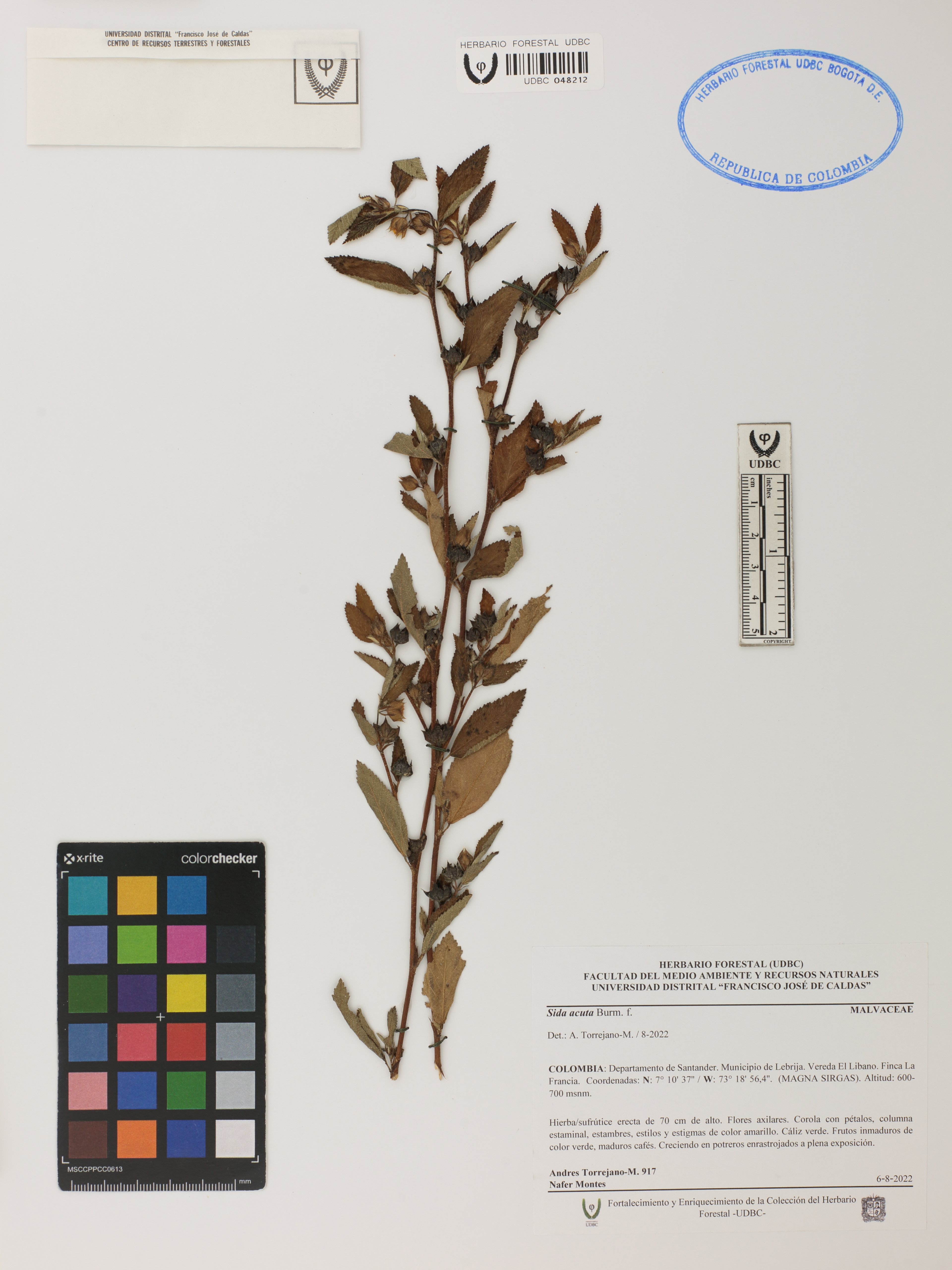 Fotografía del ejemplar Torrejano-M., Andrés 917, determinado como Sida acuta en el año 2022