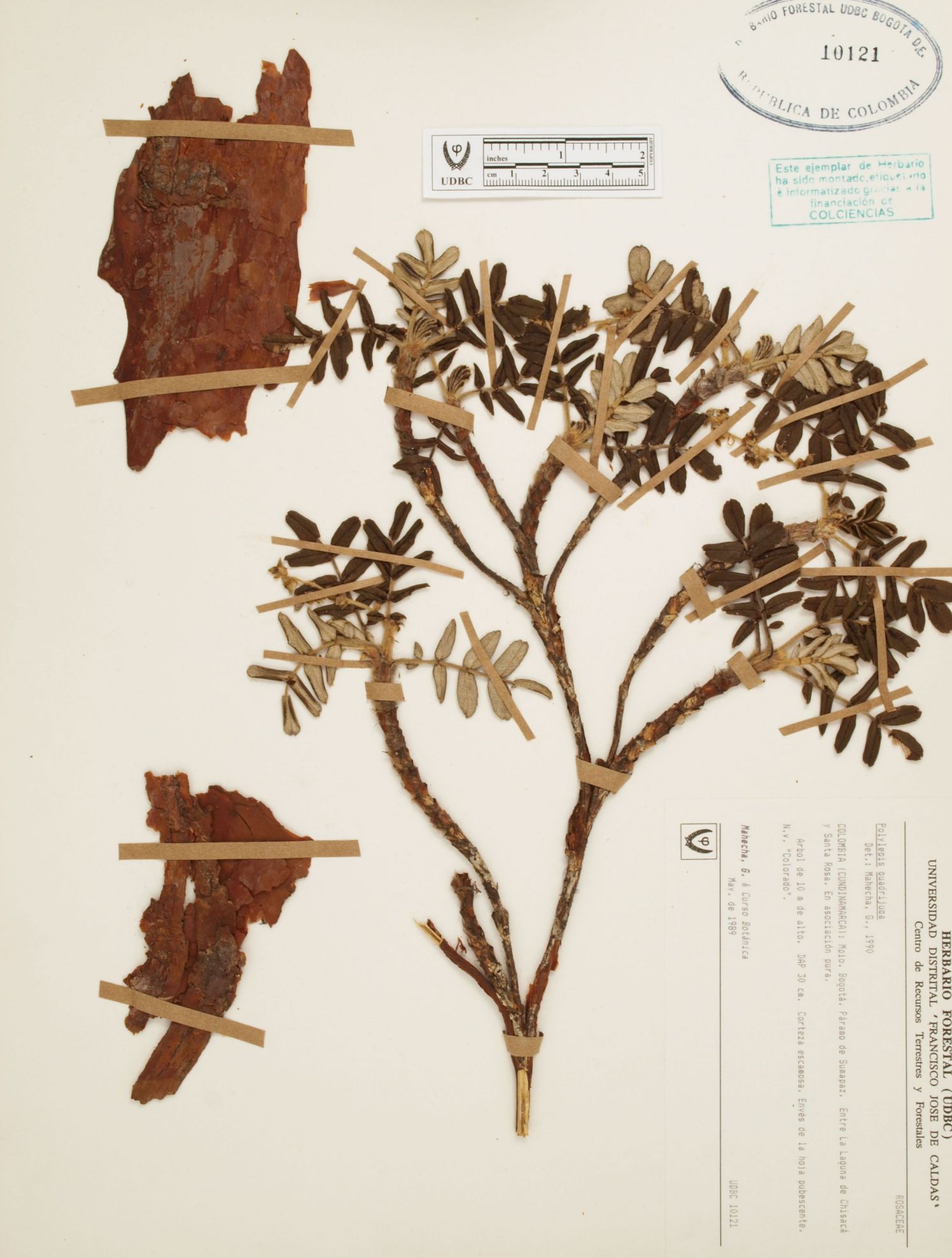 Fotografía del ejemplar Mahecha, G., determinado como Polylepis quadrijuga en el año 1990