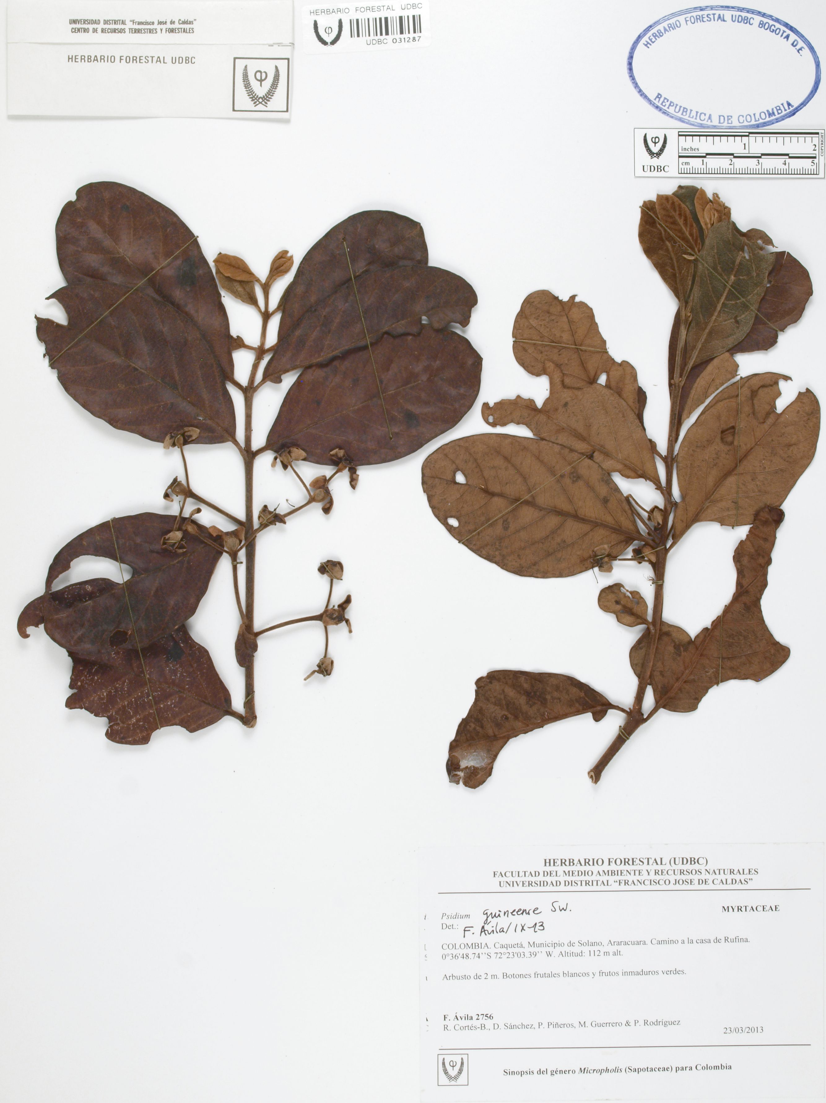 Fotografía del ejemplar Ávila, F. 2756, determinado como Psidium guineense en el año 2013