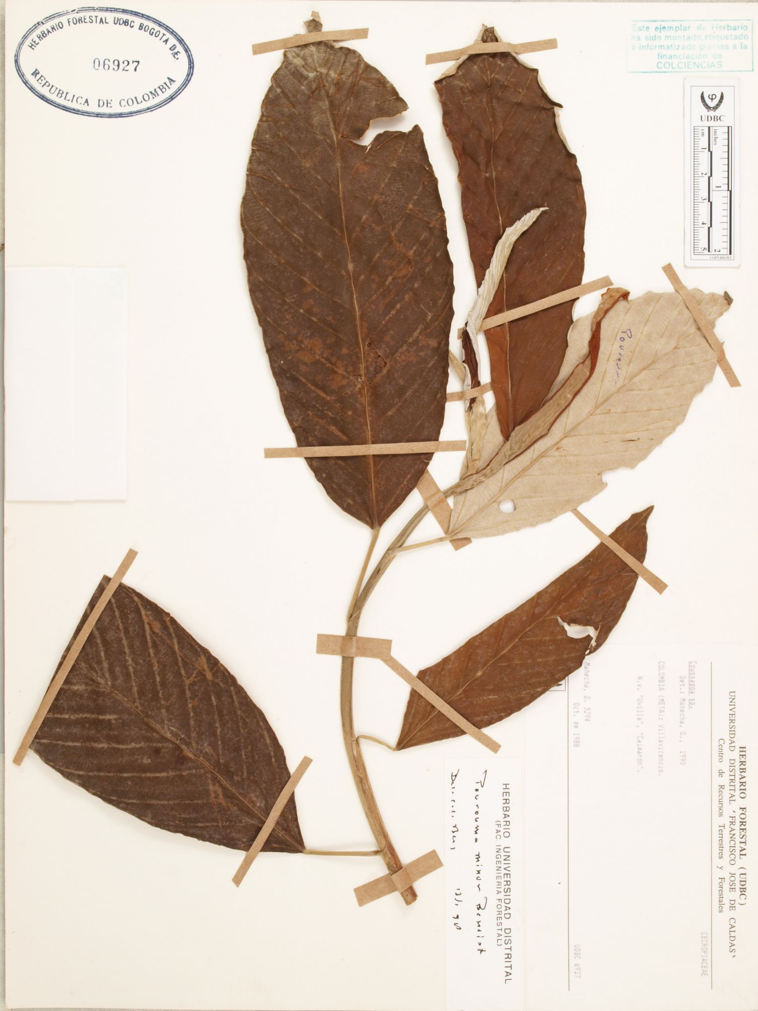 Fotografía del ejemplar Mahecha, G. 5294, determinado como Pourouma minor en el año 1997