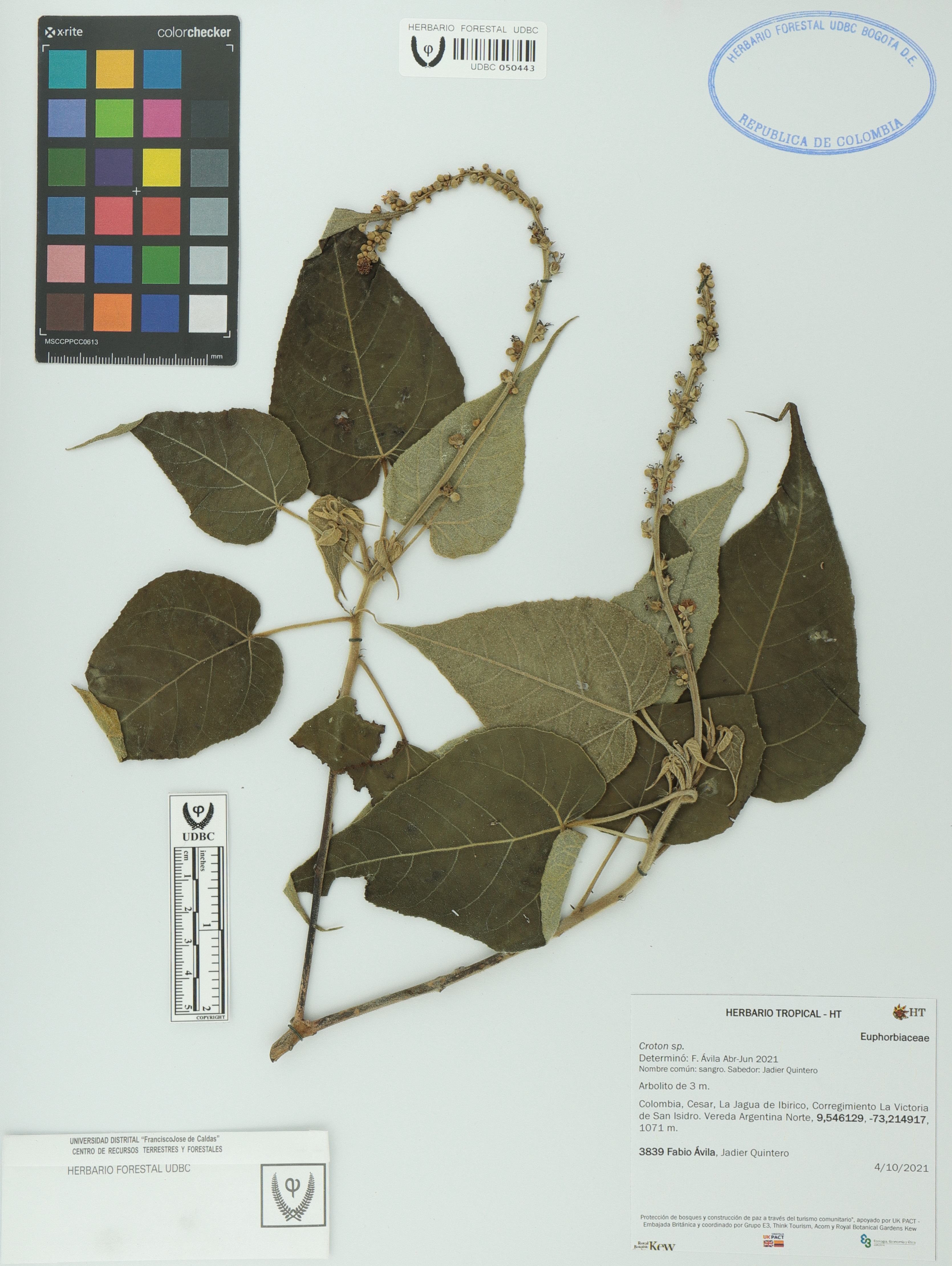 Fotografía del ejemplar Ávila, F. 3839, determinado como Croton sp. en el año 2021
