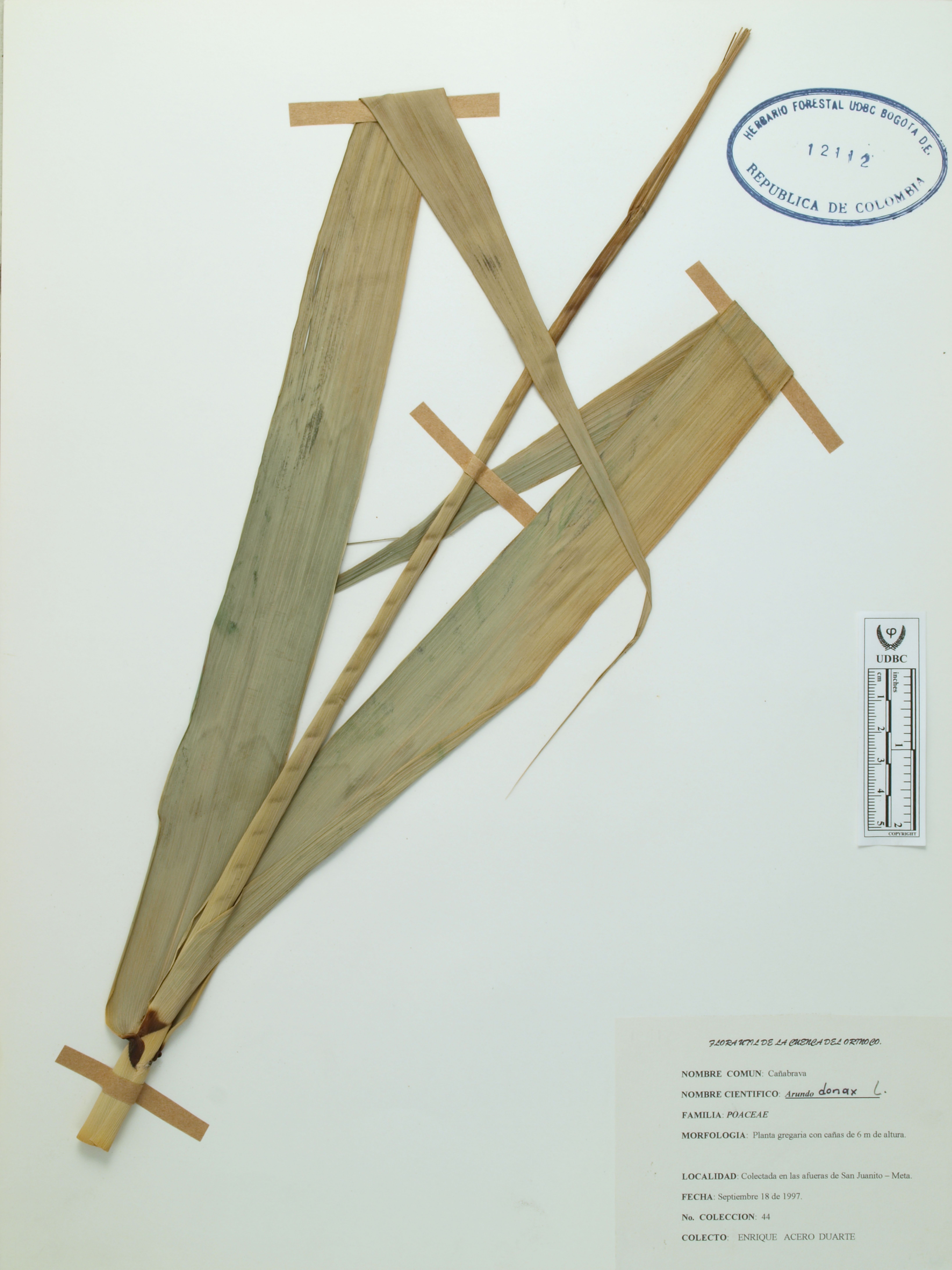 Fotografía del ejemplar Acero, E. 44, determinado como Arundo donax