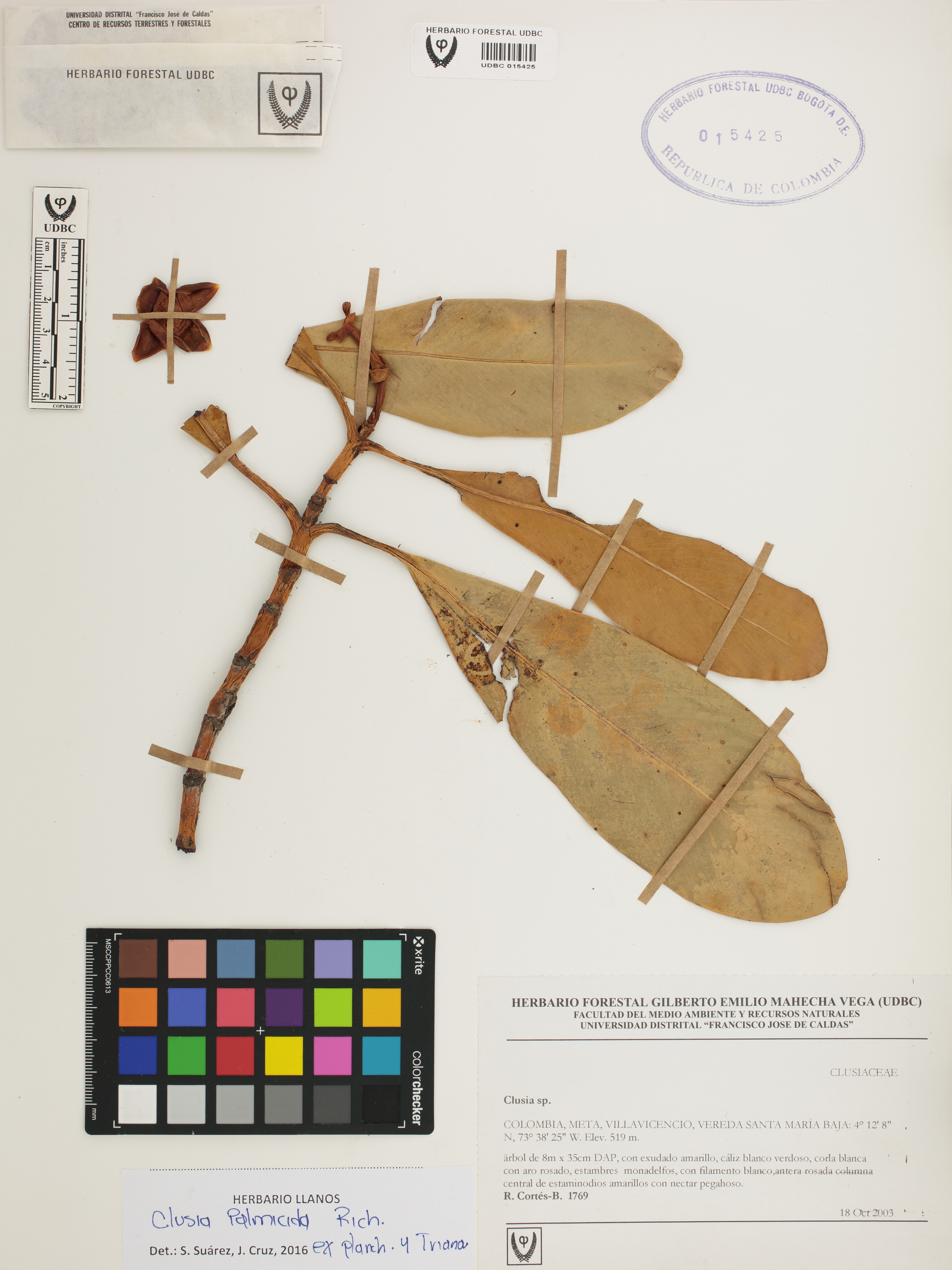 Fotografía del ejemplar Cortés-B., R. 1769, determinado como Clusia palmicida en el año 2016