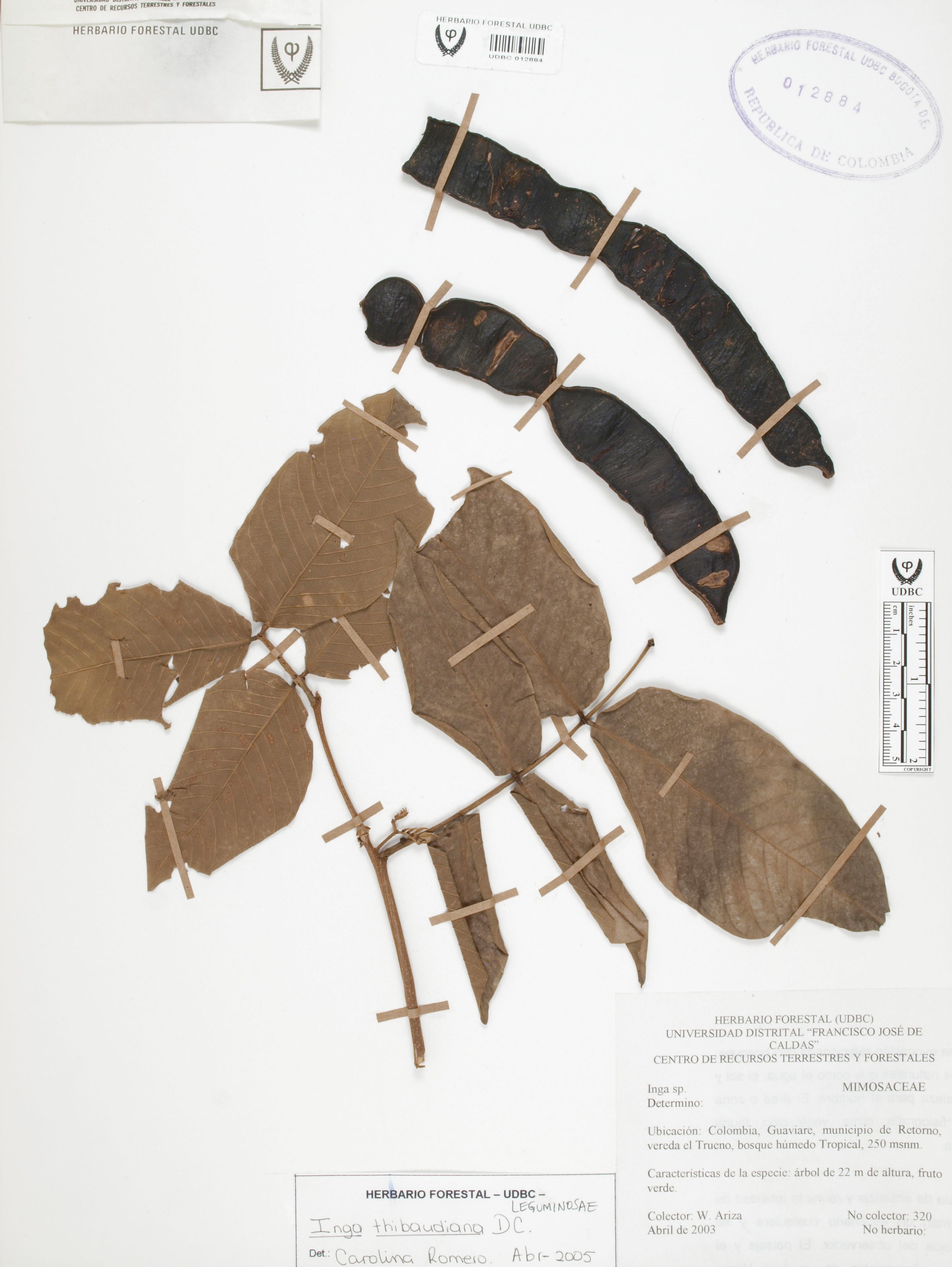 Fotografía del ejemplar Ariza, W. 320, determinado como Inga thibaudiana en el año 2005