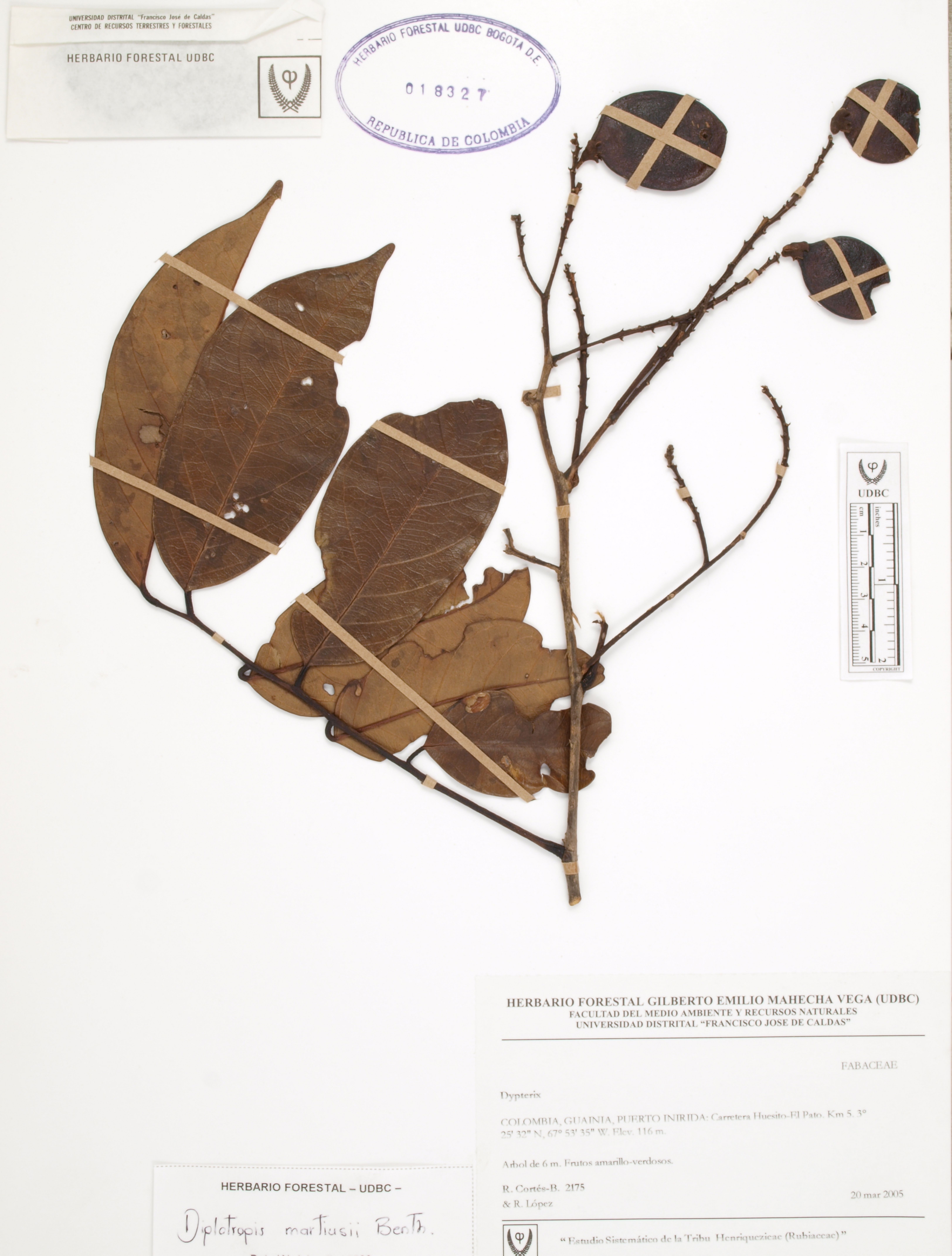 | dc.description | Fotografía del ejemplar Cortés-B., R. 2175, determinado como Diplotropis martiusii en el año 2006 | |