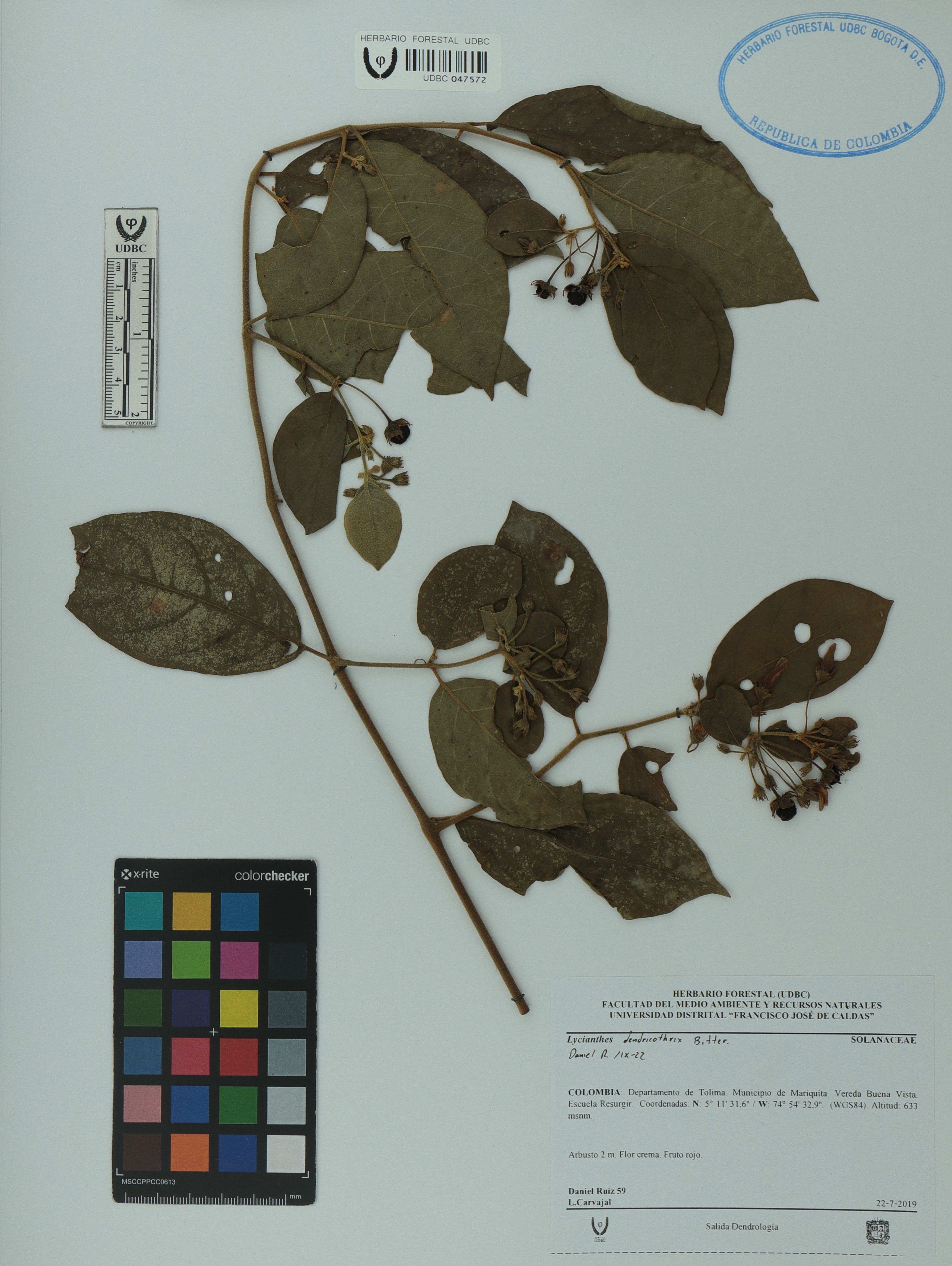 Fotografía del ejemplar Ruiz, D. 59, determinado como Lycianthes dendriticothrix en el año 2022