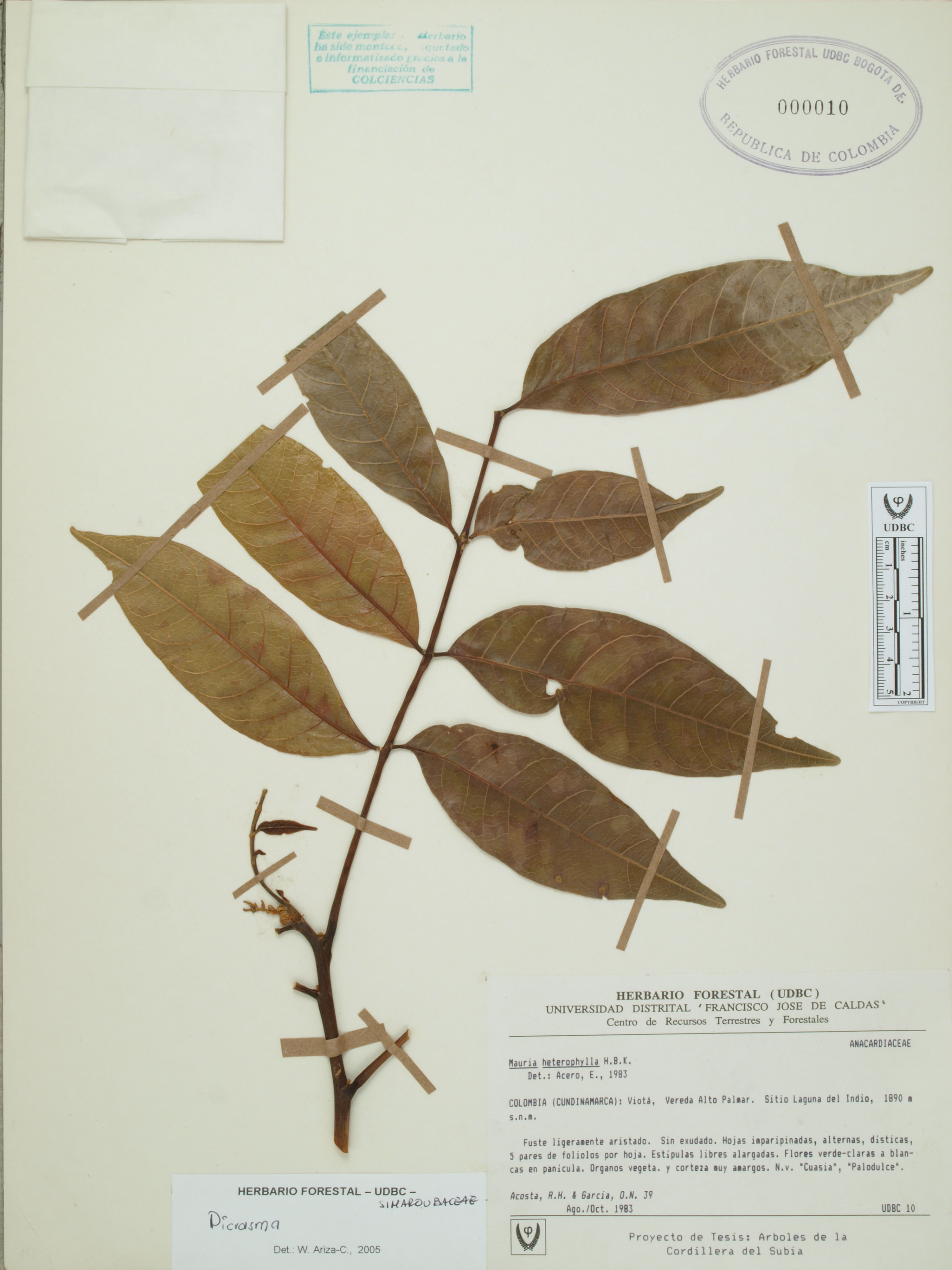 Fotografía del ejemplar Acosta, R. 39, determinado como Picrasma sp. en el año 2005