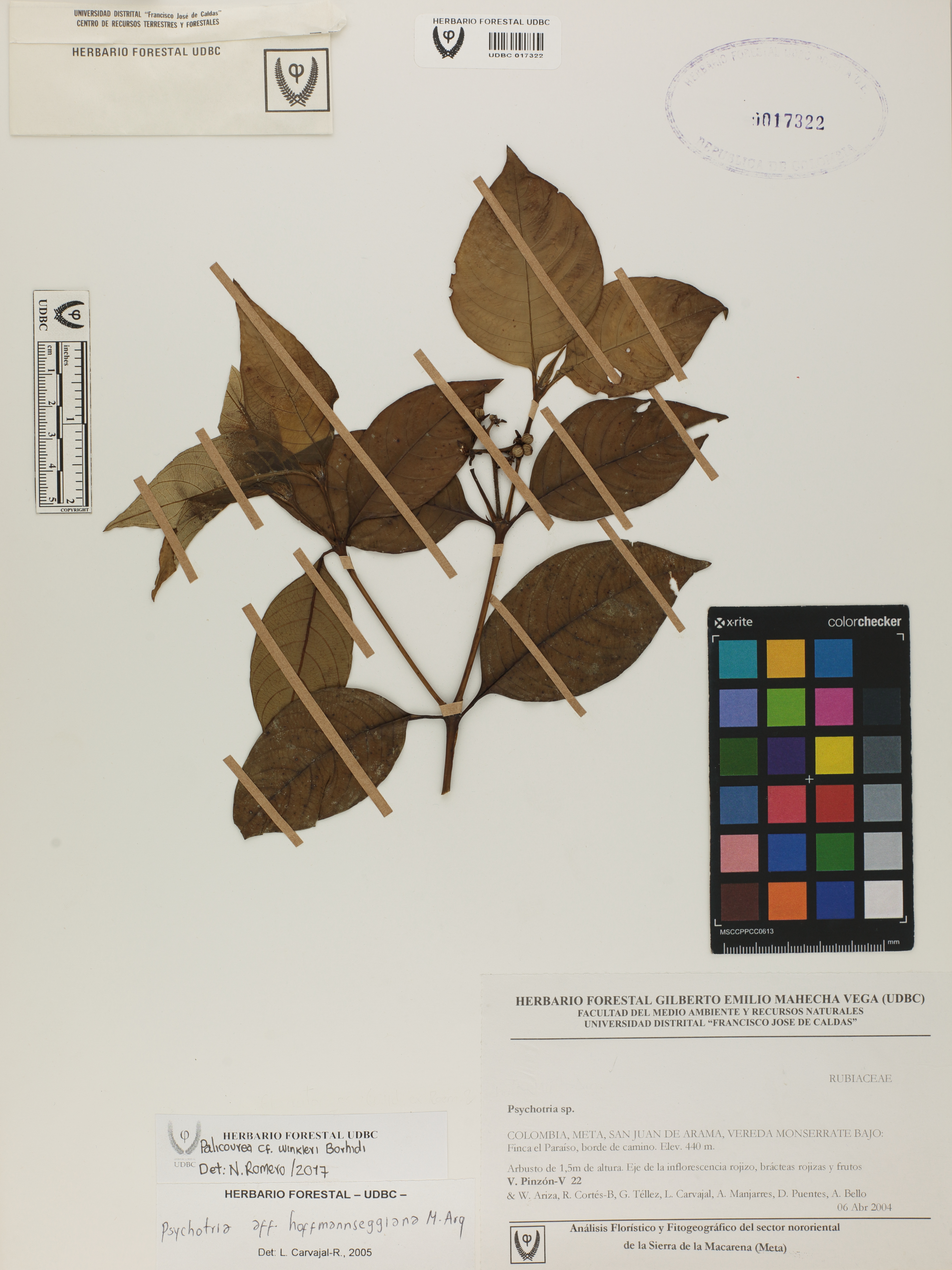 Fotografía del ejemplar Pinzón-V., V. 22, determinado como Palicourea winkleri en el año 2017