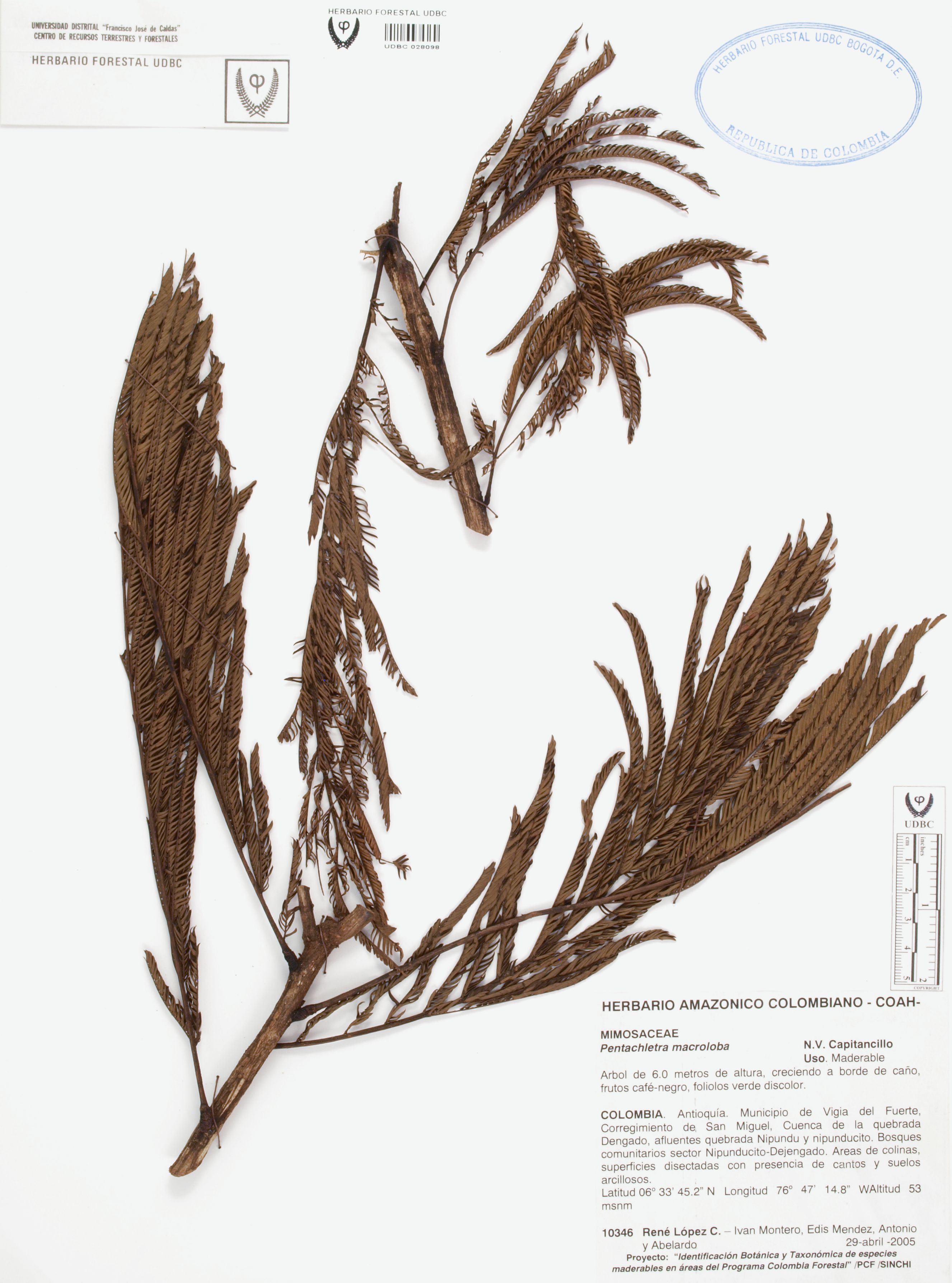 | dc.description | Fotografía del ejemplar López, R. 10346, determinado como Pentaclethra macroloba | |