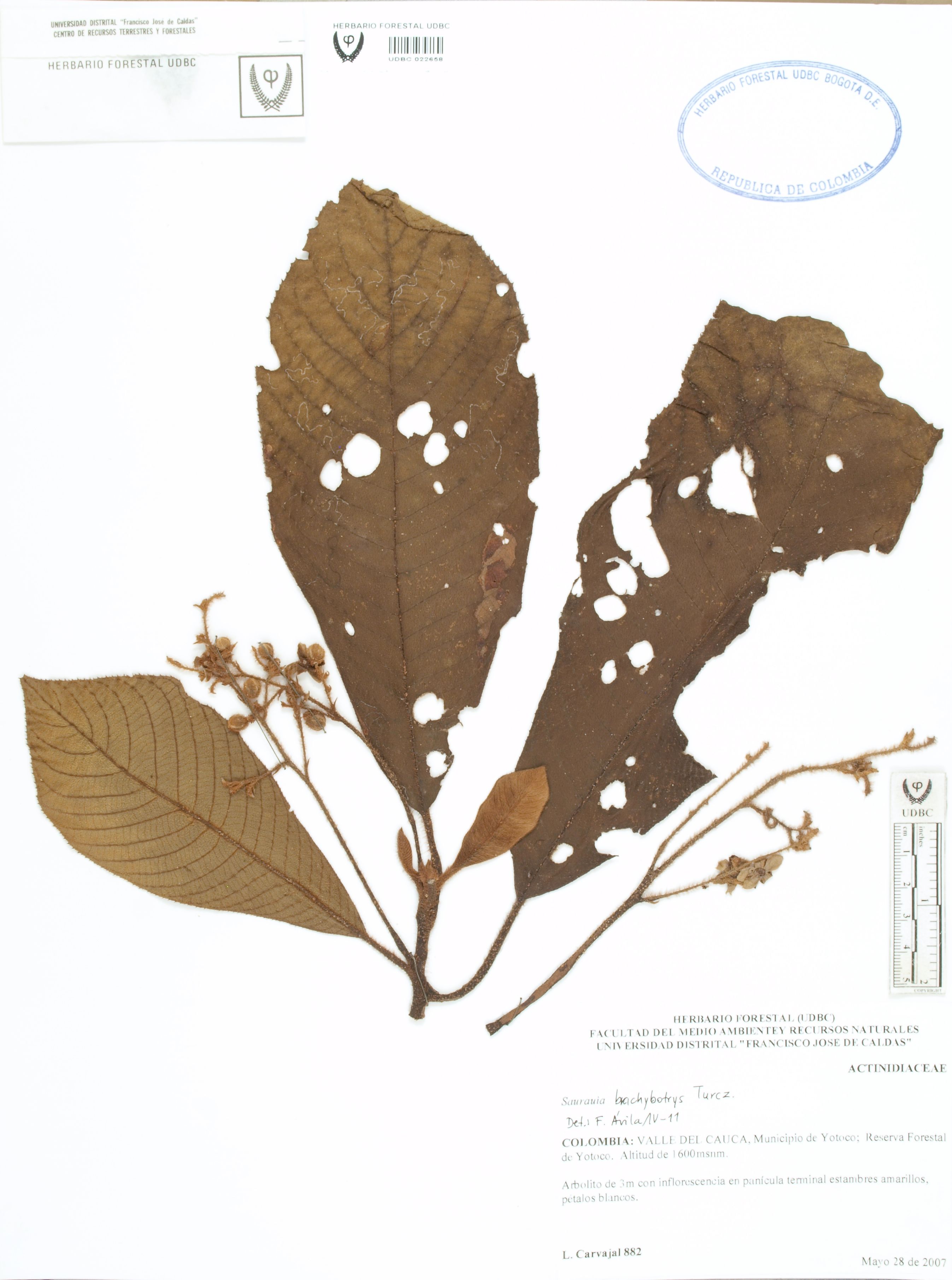 Fotografía del ejemplar Carvajal, L. 882, determinado como Saurauia brachybotrys en el año 2011