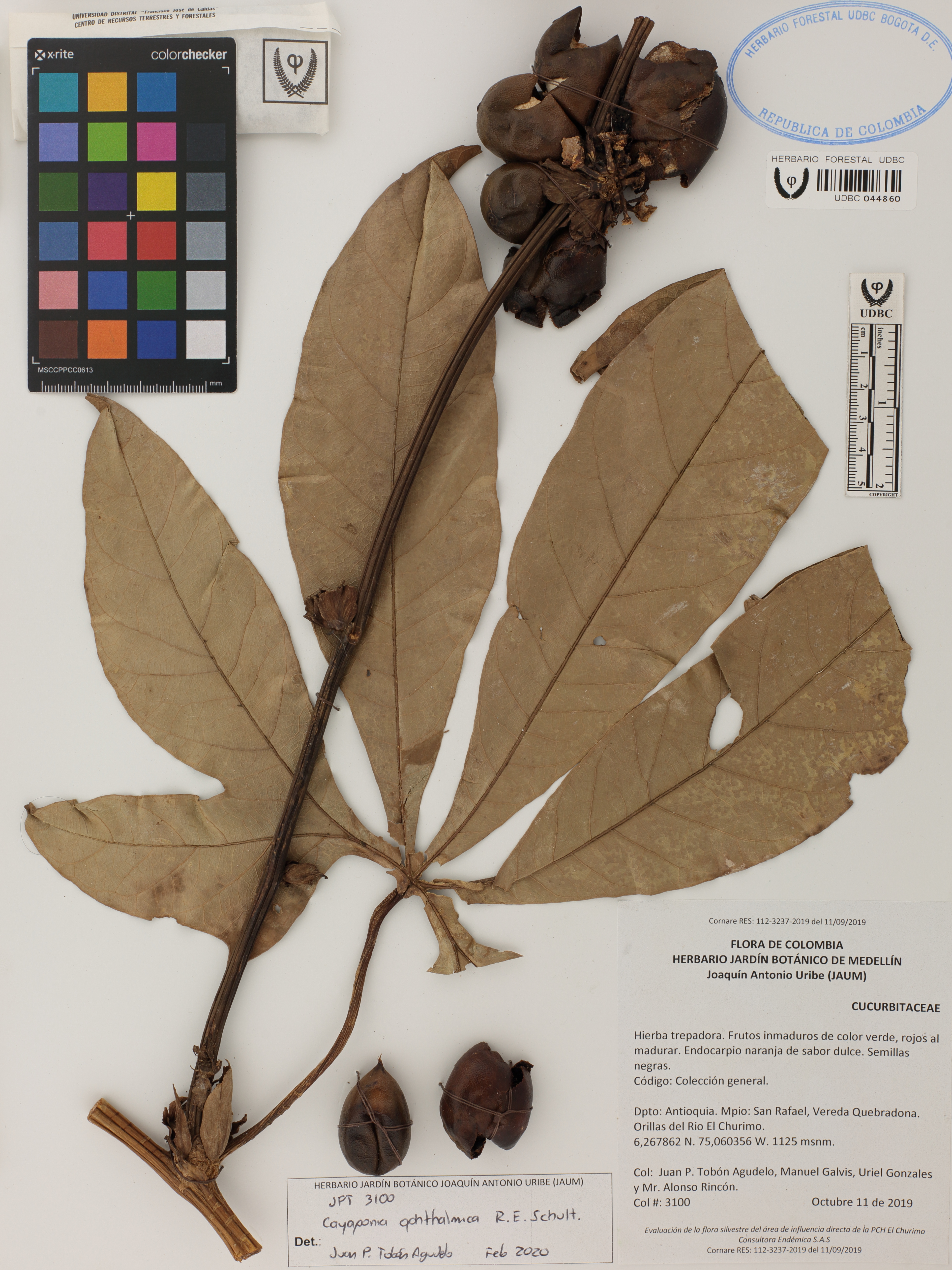 | dc.description | Fotografía del ejemplar Tobón-Agudelo, J. 3100, determinado como Cayaponia ophthalmica en el año 2020 | |