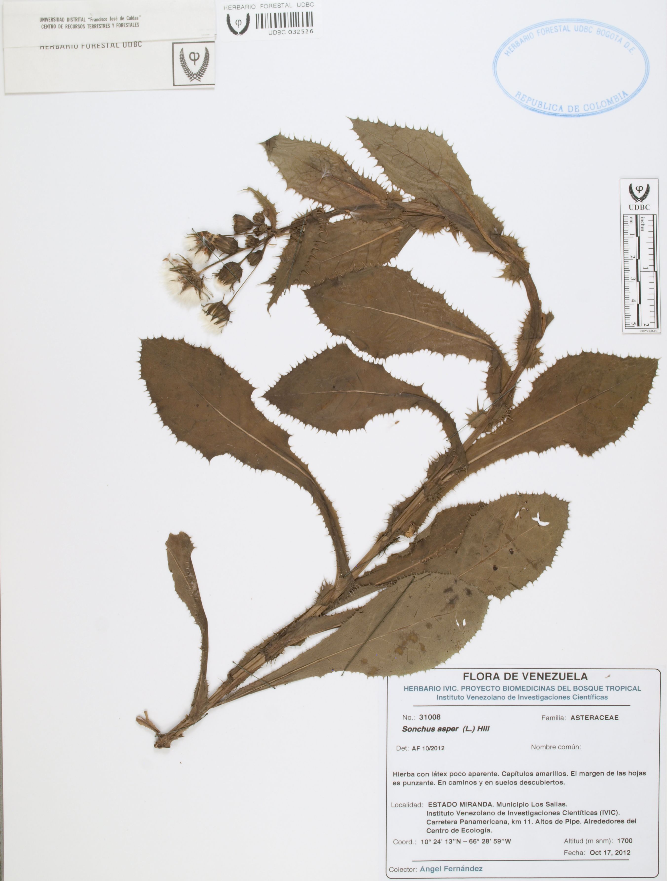 Fotografía del ejemplar Fernández, A. 31008, determinado como Sonchus asper en el año 2012
