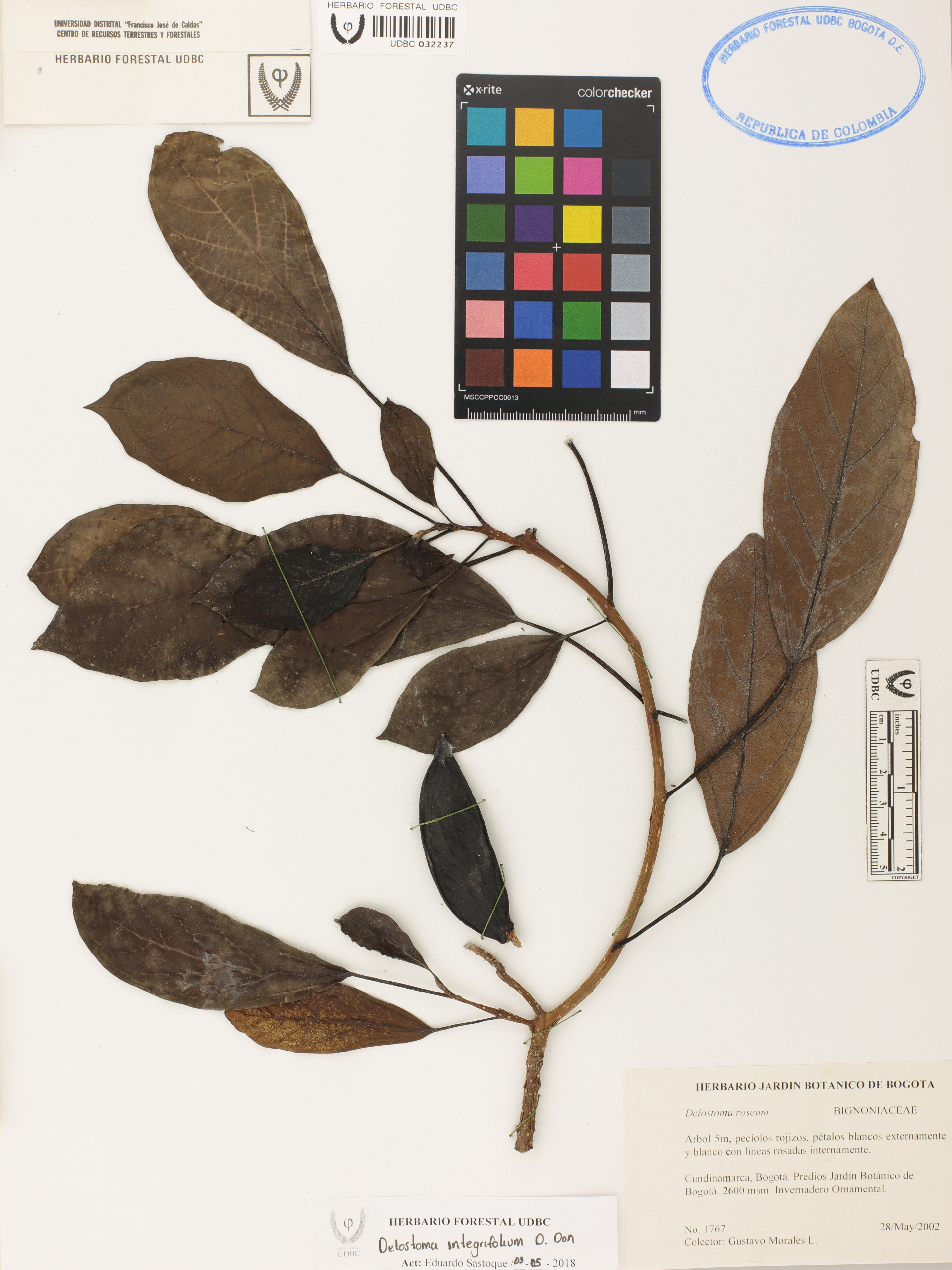 Fotografía del ejemplar Morales, G. 1767, determinado como Delostoma integrifolium