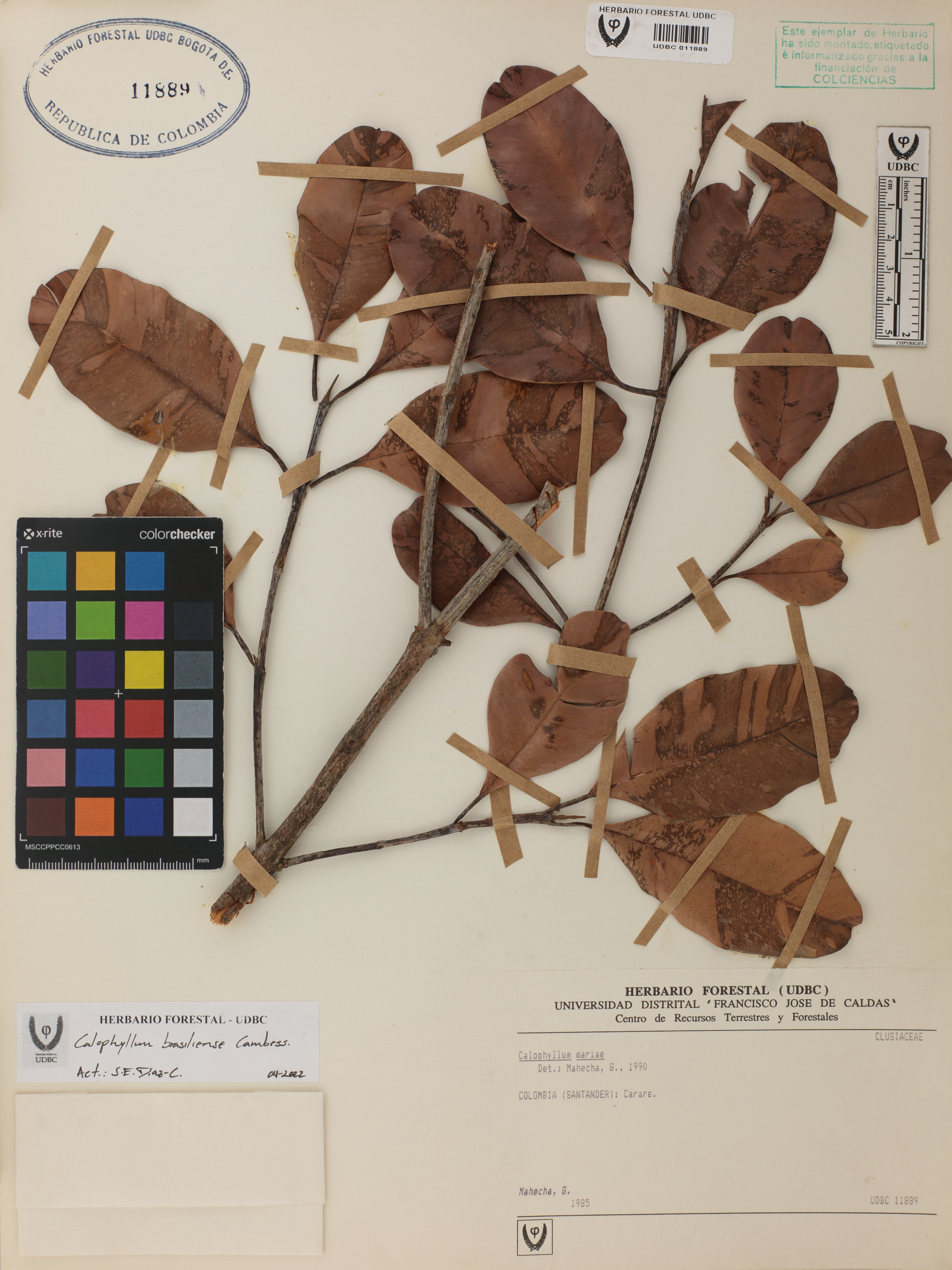 Fotografía del ejemplar Mahecha, G., determinado como Calophyllum brasiliense en el año 1990
