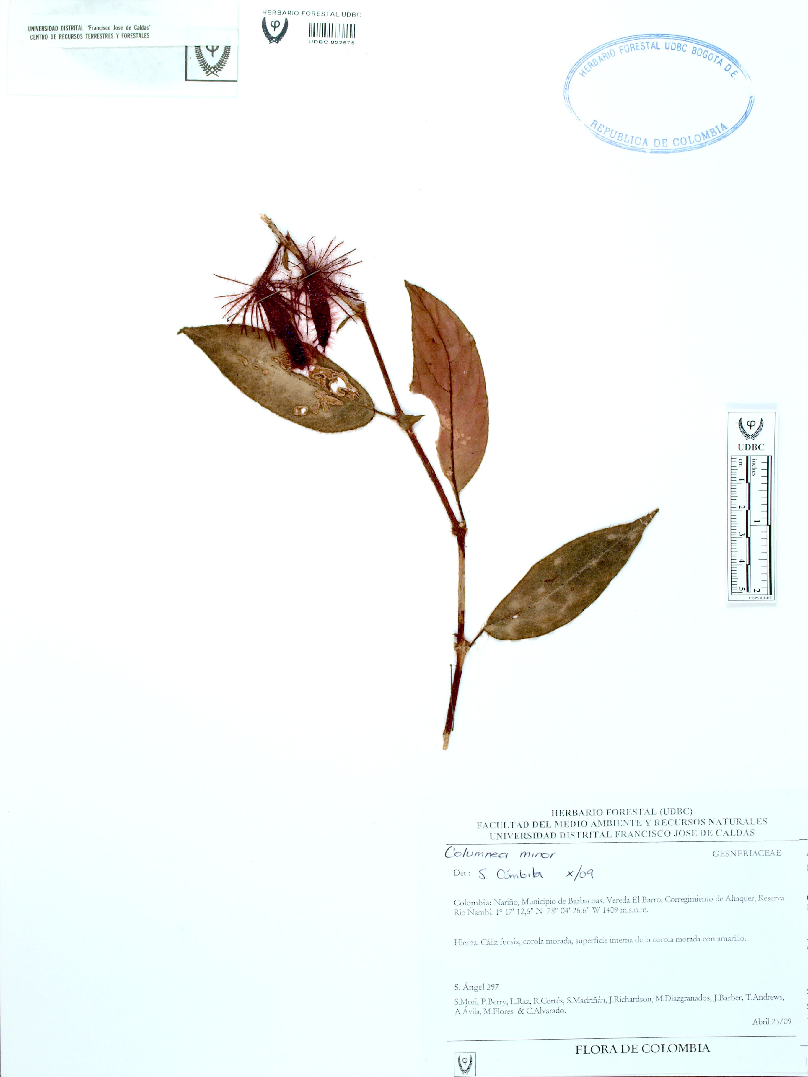Fotografía del ejemplar Ángel, S. 297, determinado como Columnea minor en el año 2009
