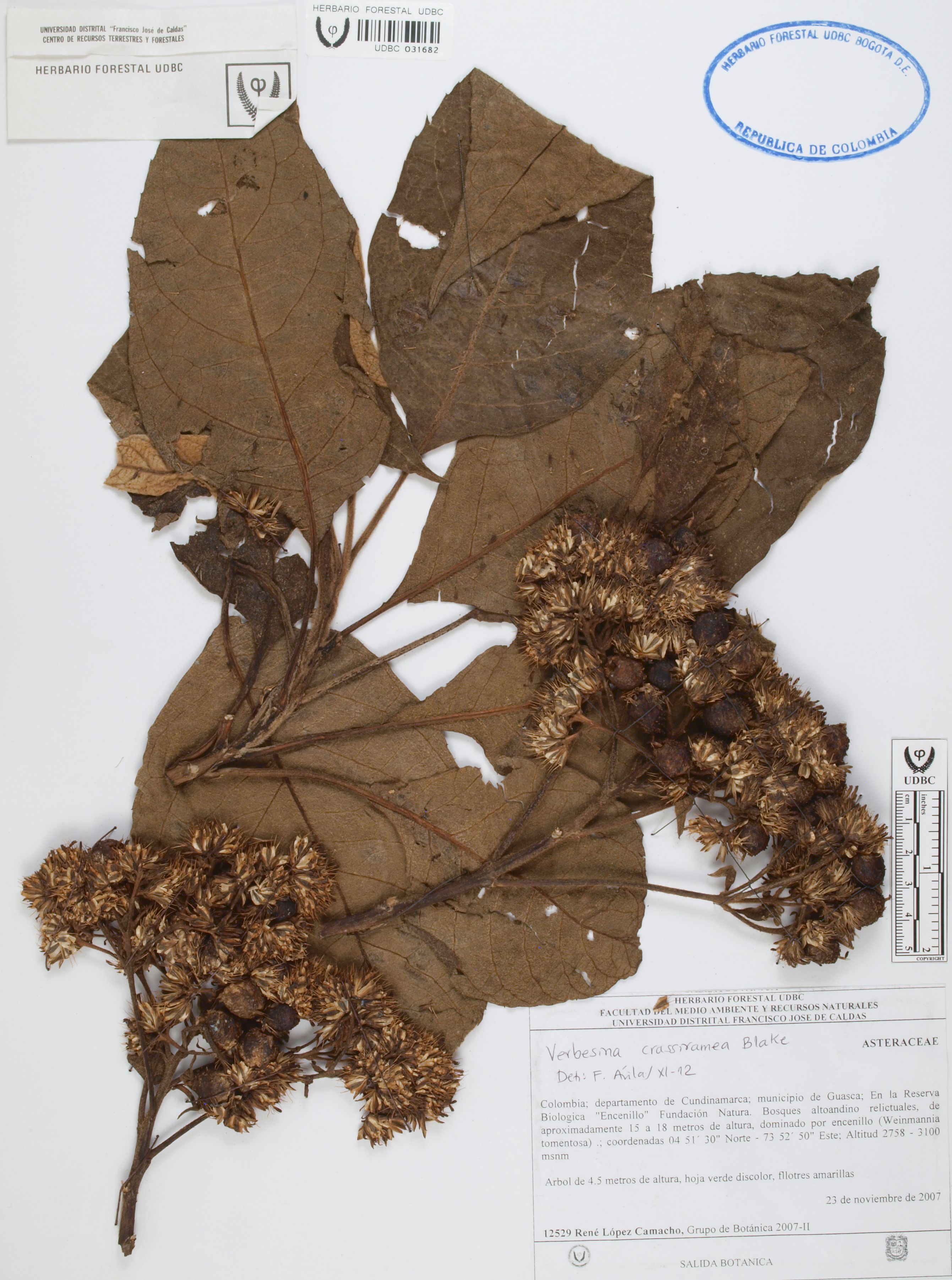 Fotografía del ejemplar López, R. 12529, determinado como Verbesina crassiramea en el año 2012