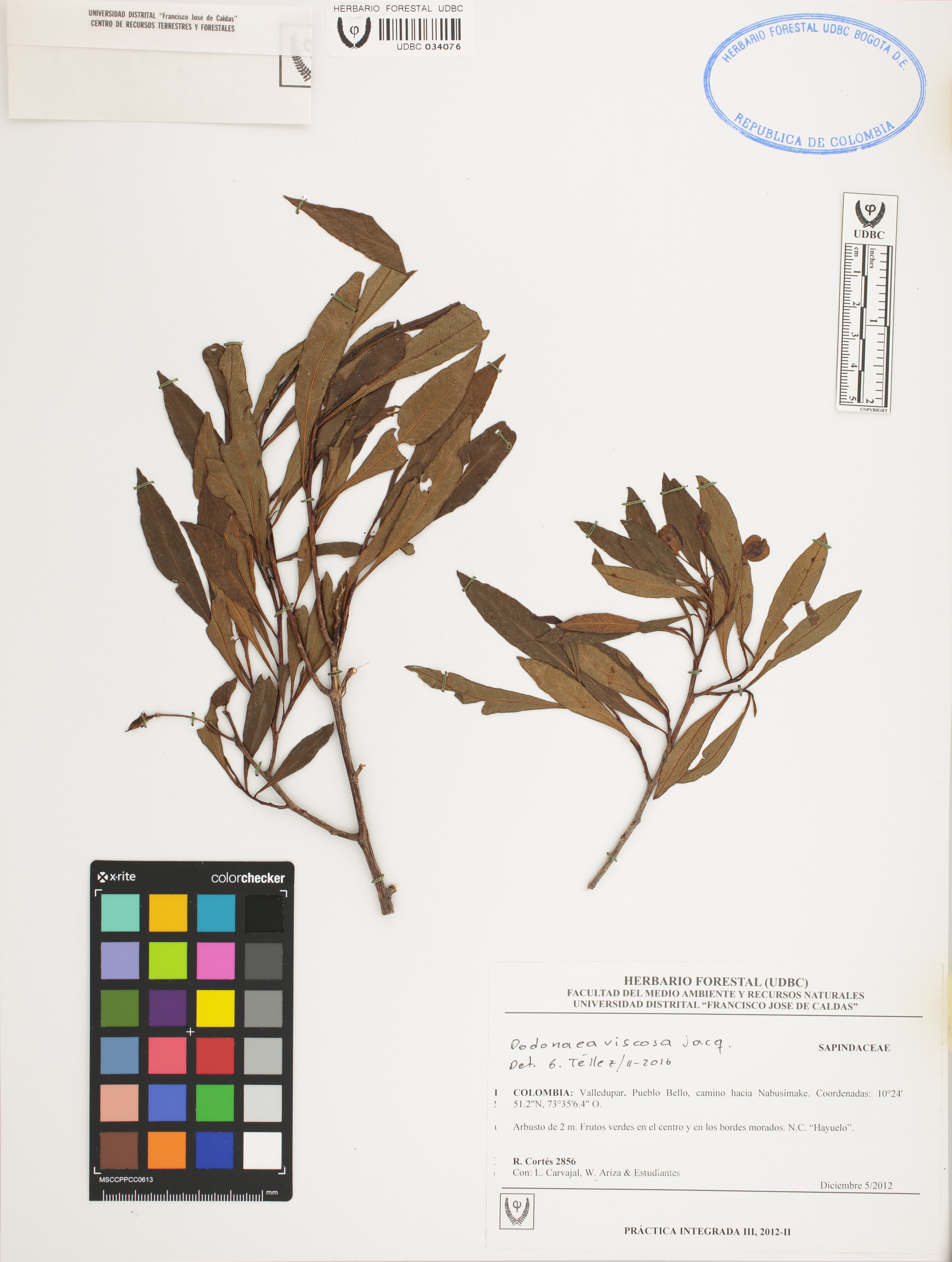 | dc.description | Fotografía del ejemplar Cortés, R. 2856, determinado como Dodonaea viscosa en el año 2016 | |