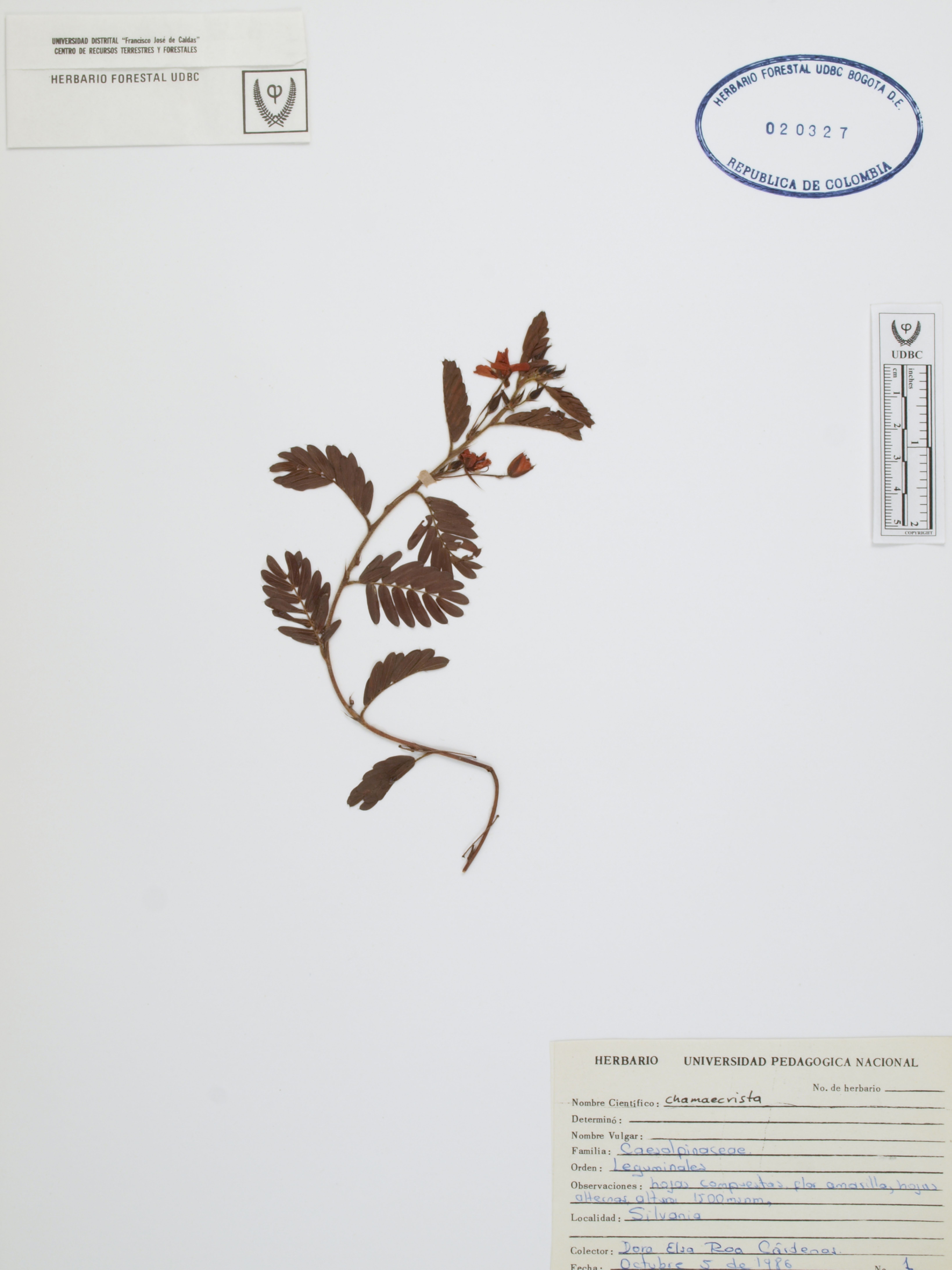 Fotografía del ejemplar Roa, D. 1, determinado como Chamaecrista sp.