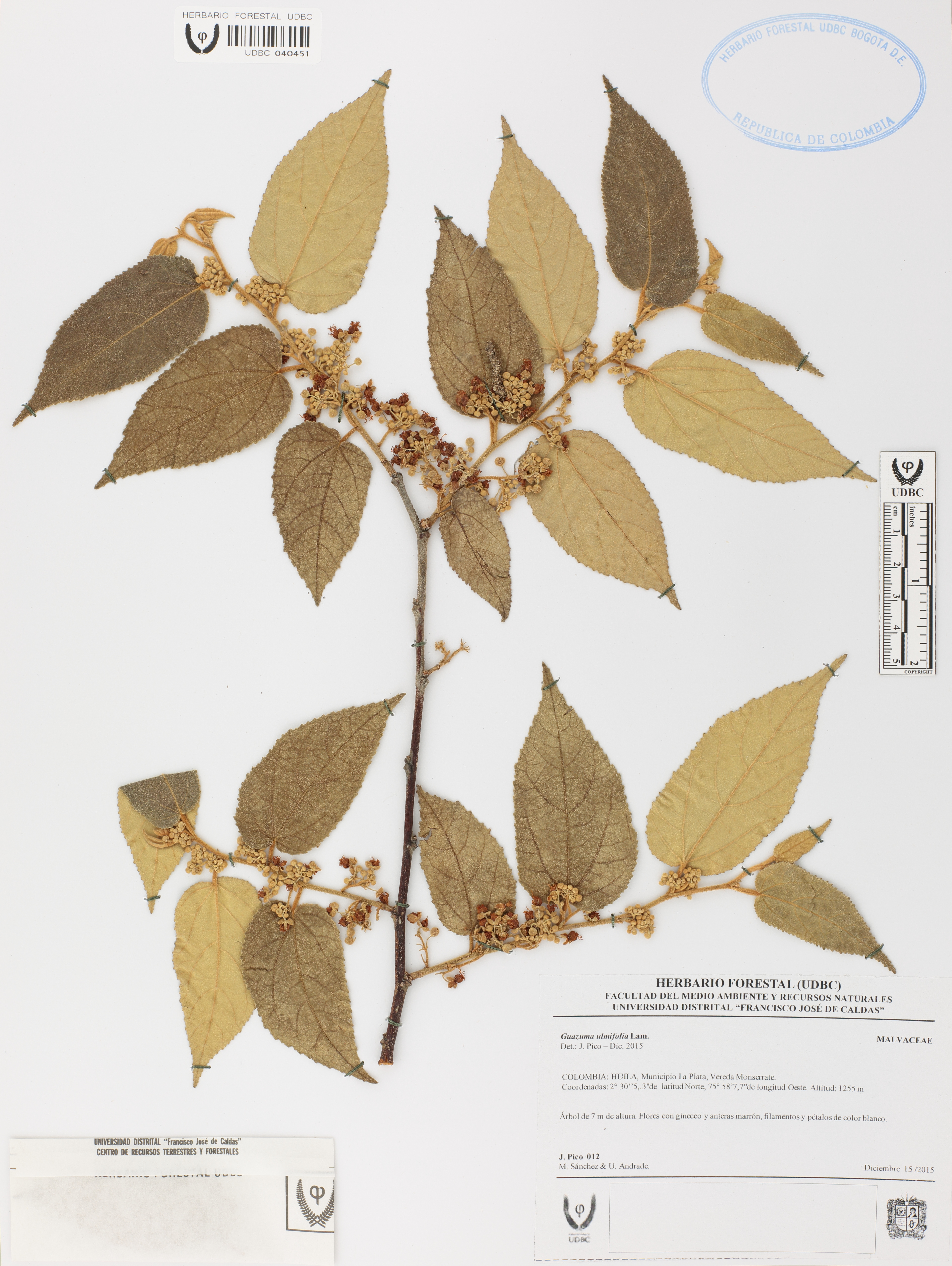 Fotografía del ejemplar Pico, J. 12, determinado como Guazuma ulmifolia en el año 2015