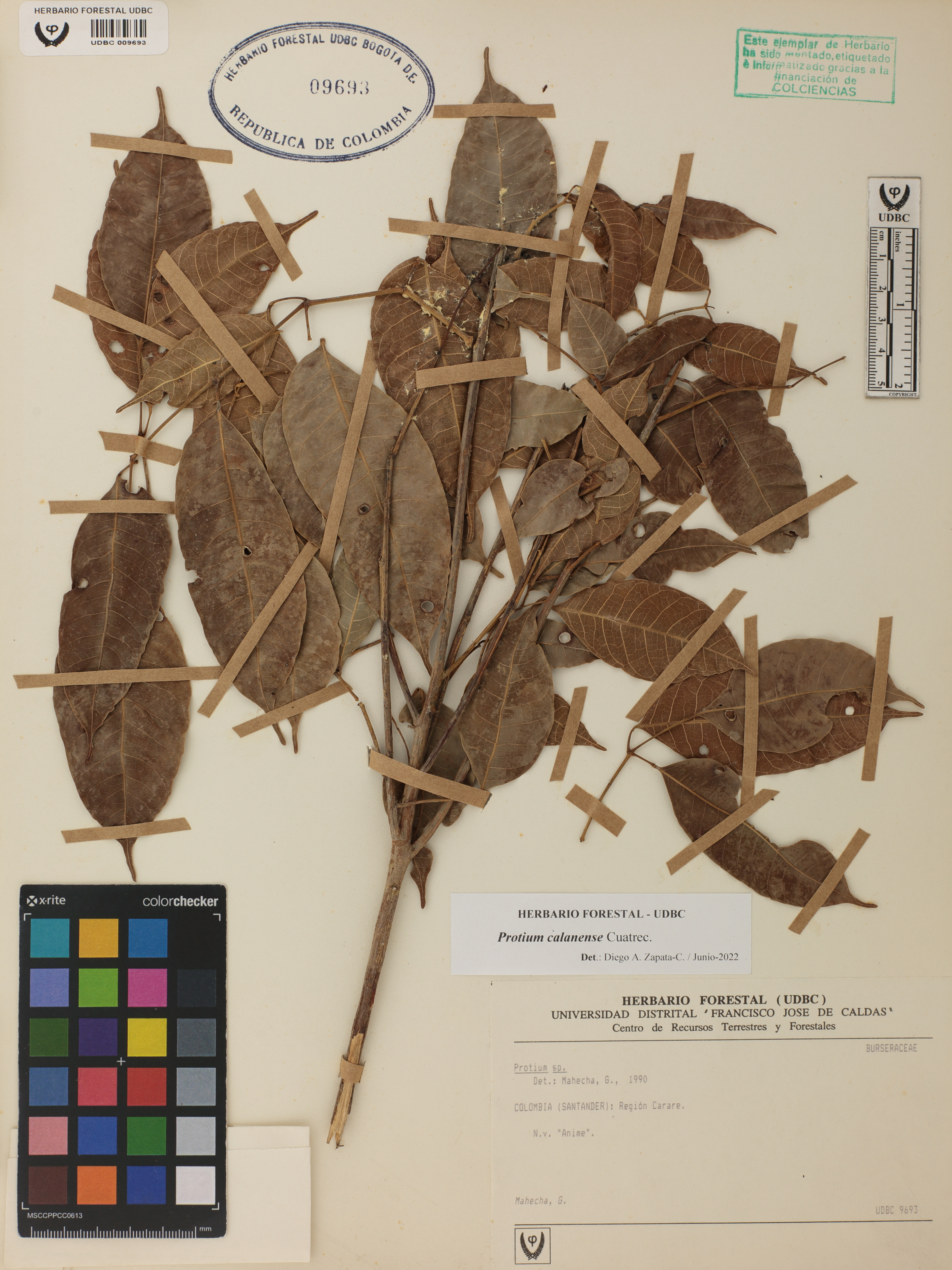 Fotografía del ejemplar Mahecha, G., determinado como Protium calanense en el año 2022