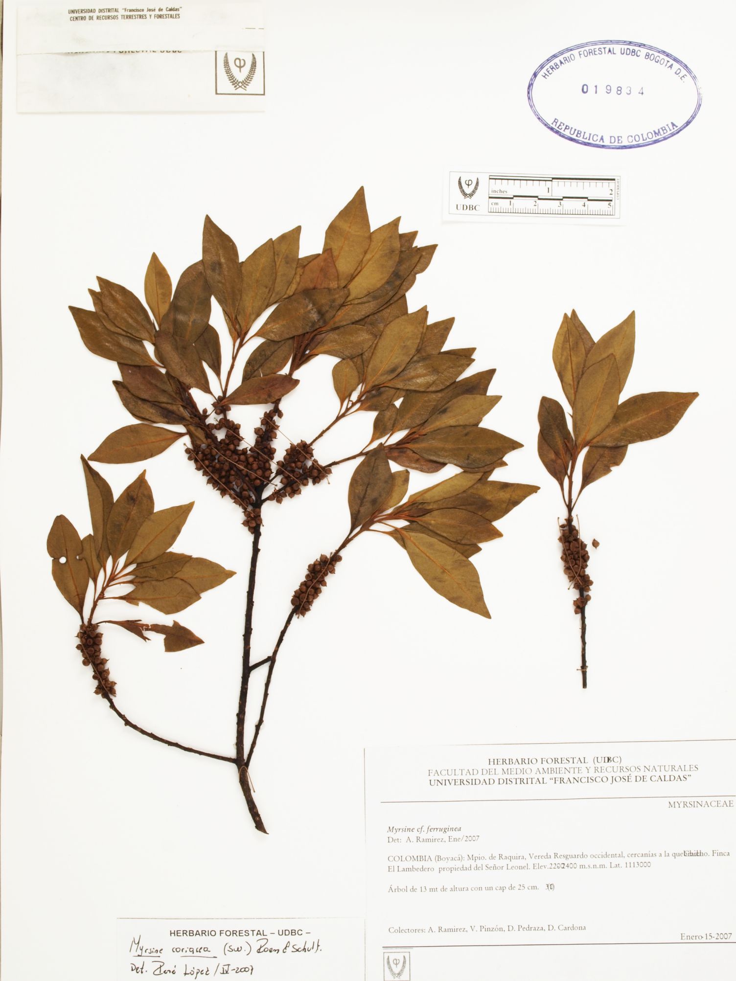 Fotografía del ejemplar Ramírez, A., determinado como Myrsine coriacea en el año 2007