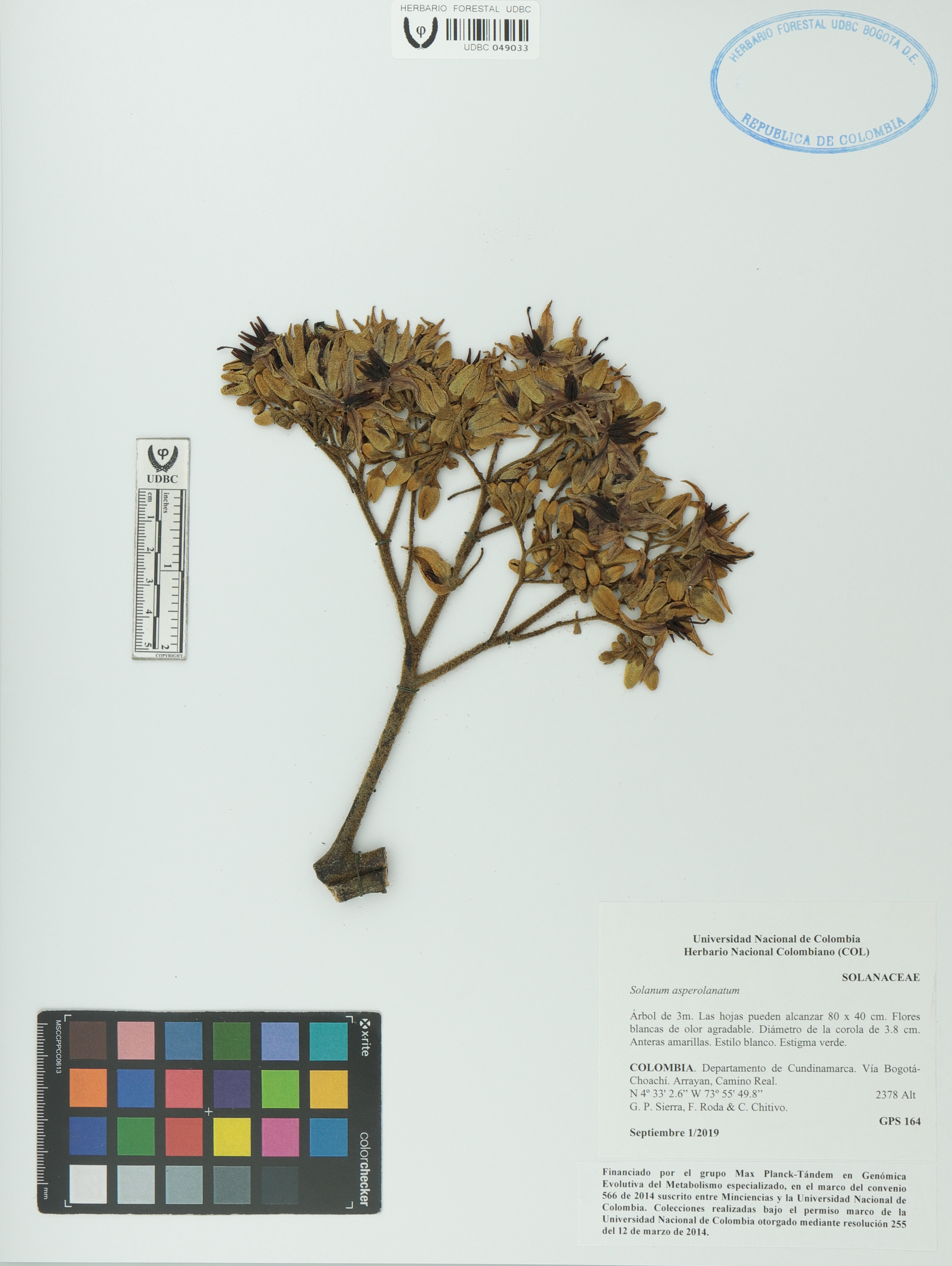Fotografía del ejemplar Sierra, G. 164, determinado como Solanum asperolanatum