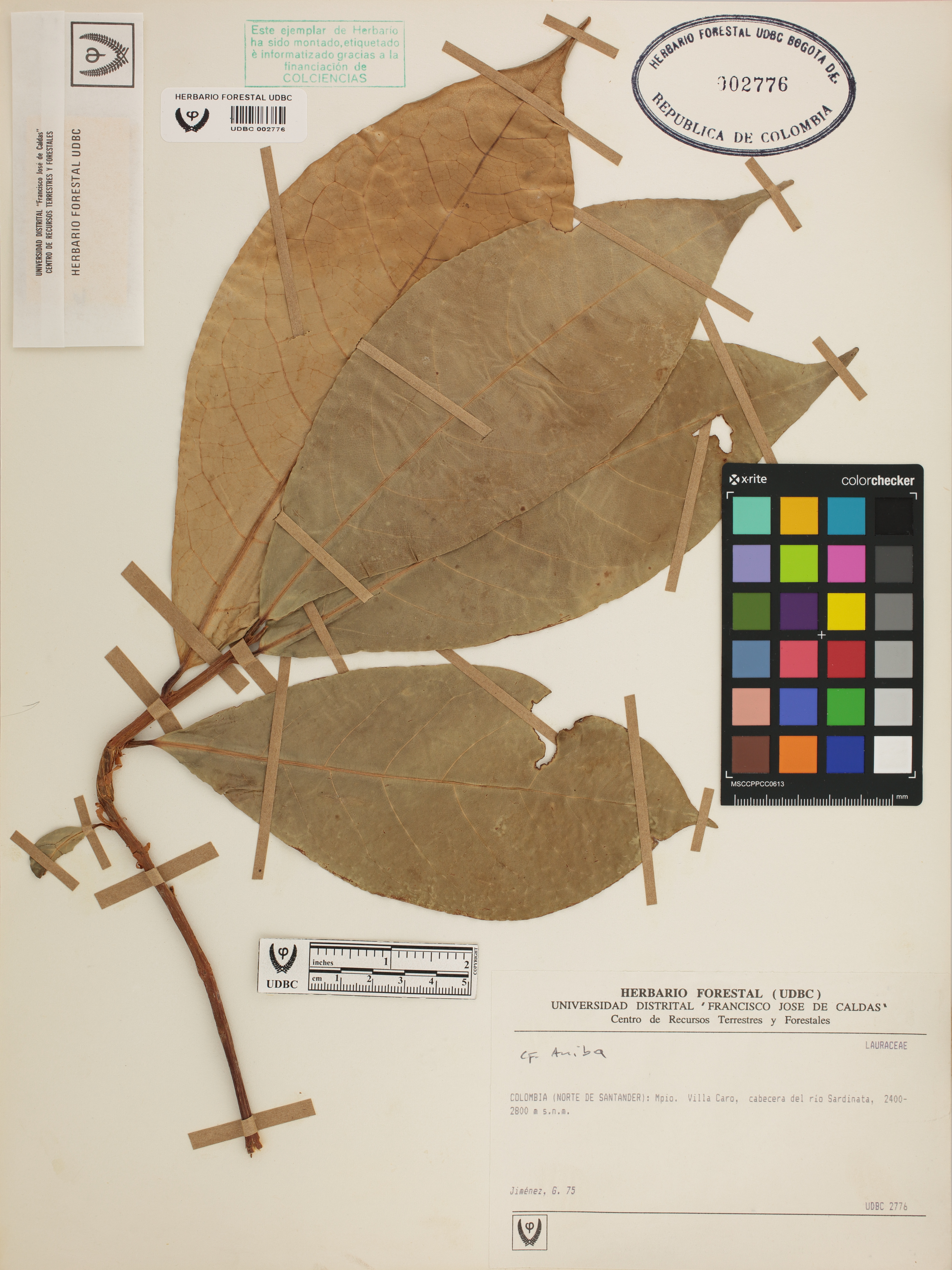 Fotografía del ejemplar Jiménez, G. 75, determinado como Aniba sp.