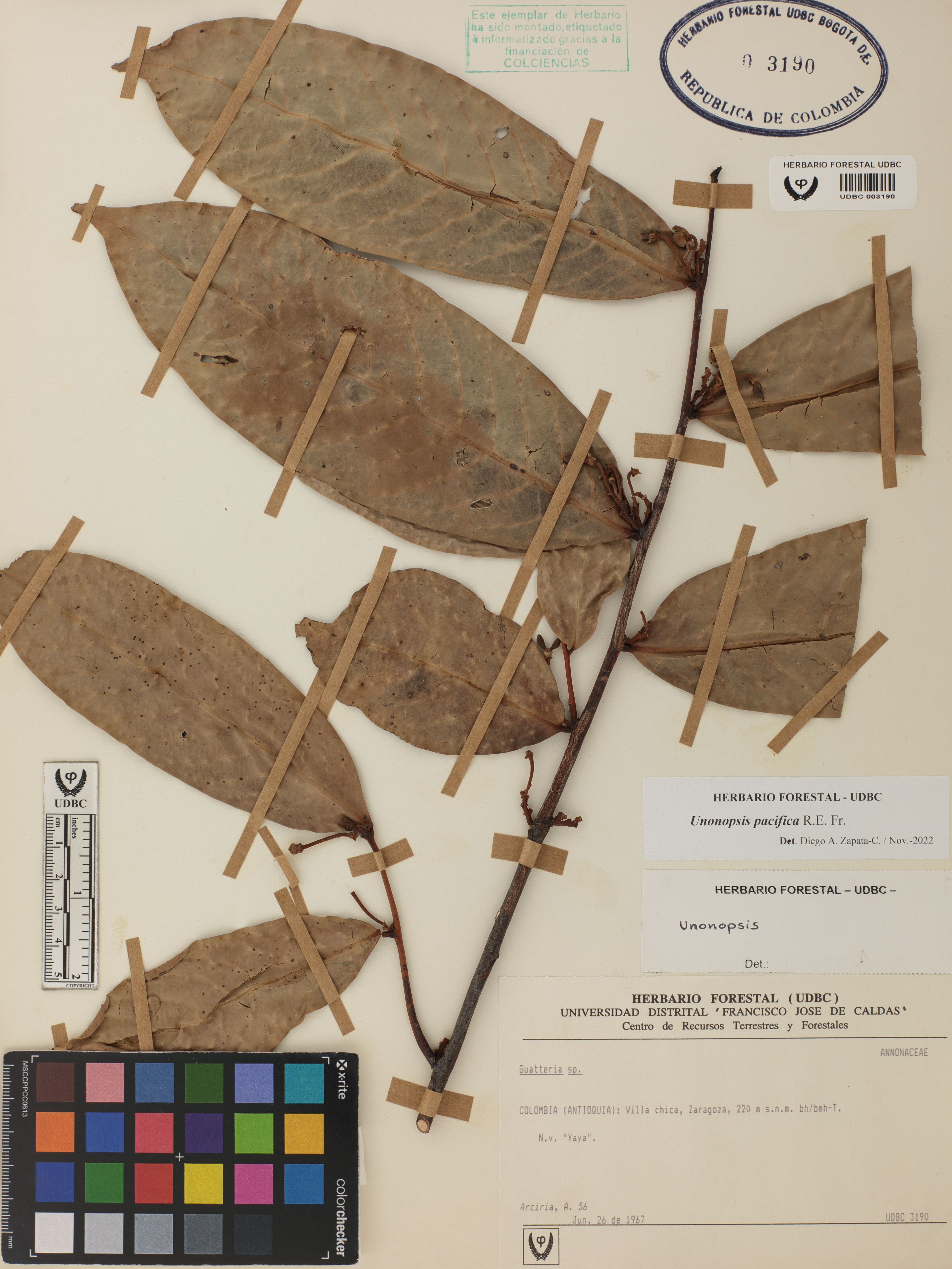 | dc.description | Fotografía del ejemplar Arciria, A. 56, determinado como Unonopsis pacifica en el año 2022 | |