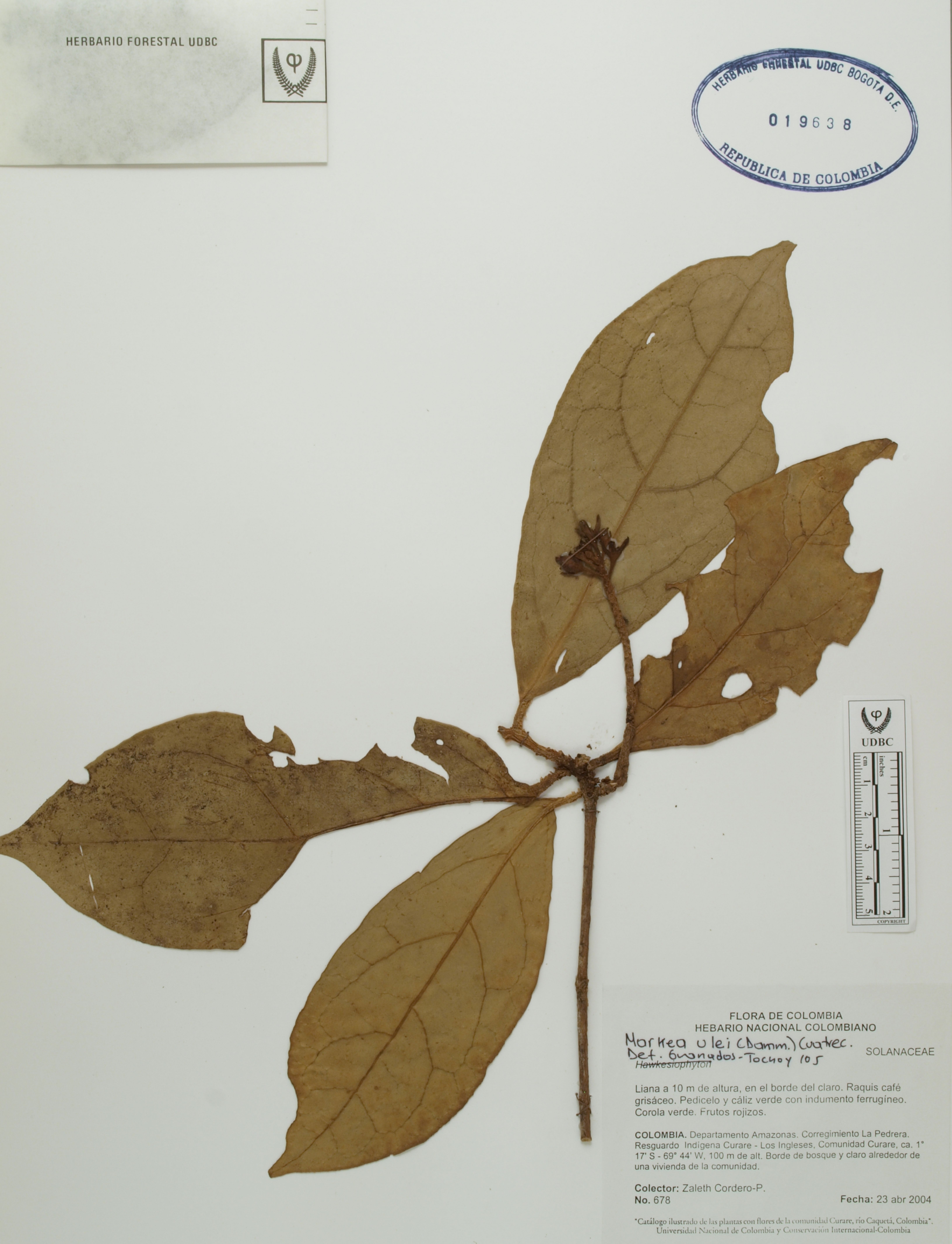 Fotografía del ejemplar Cordero, Z. 678, determinado como Markea ulei en el año 2005