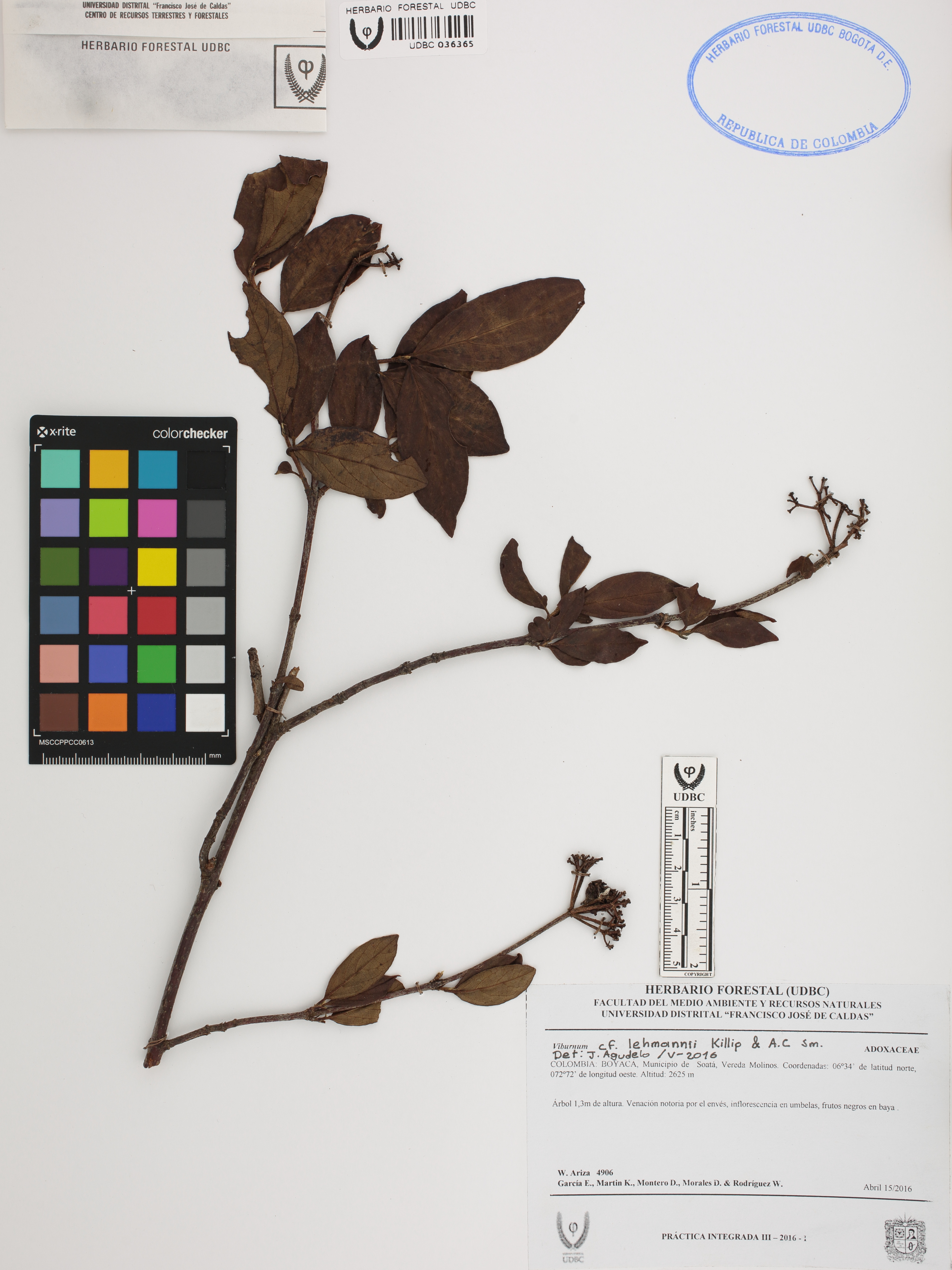 Fotografía del ejemplar Ariza, W. 4906, determinado como Viburnum lehmannii en el año 2016