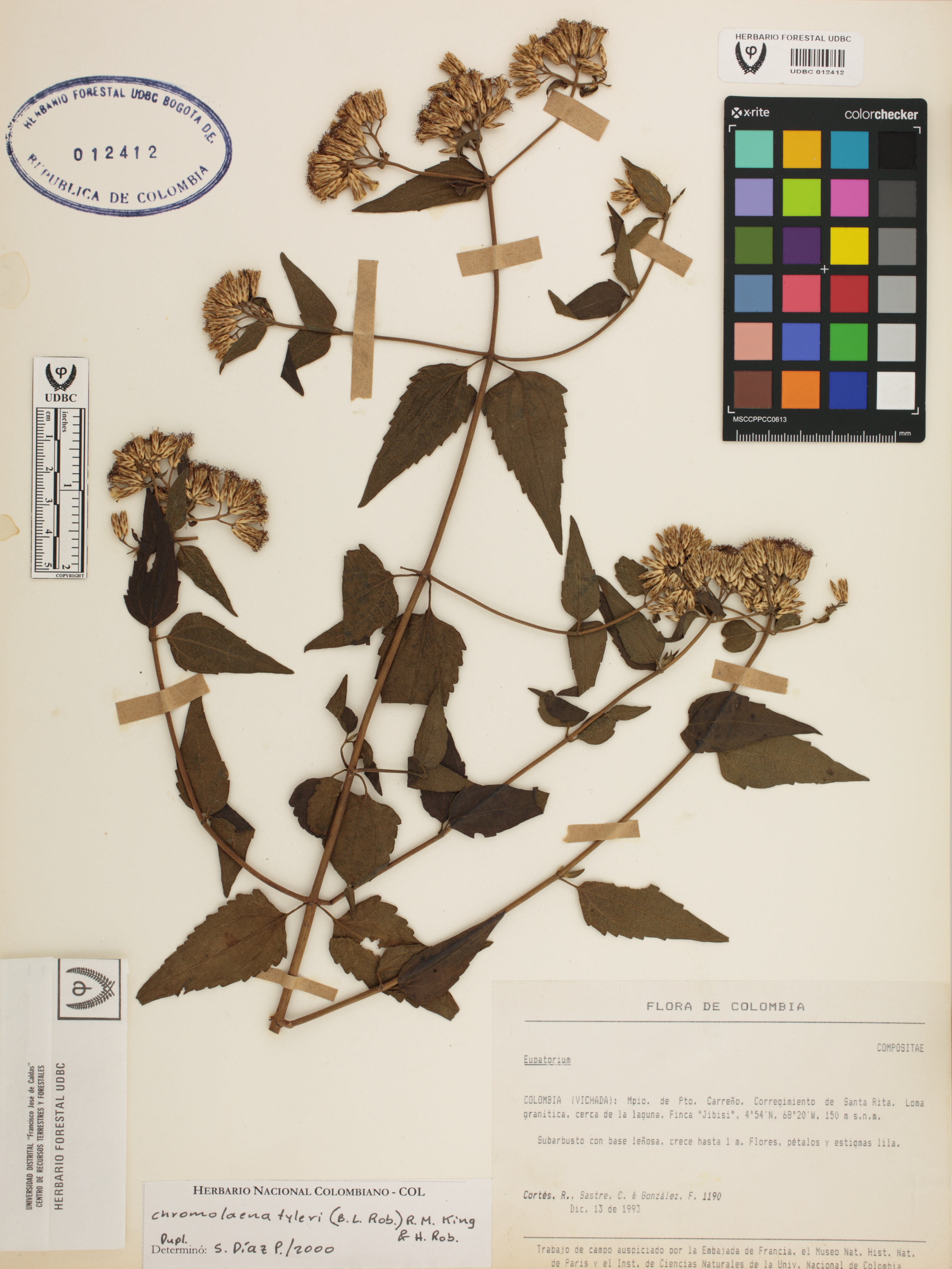 Fotografía del ejemplar Cortés, R. 1190, determinado como Chromolaena tyleri en el año 2000