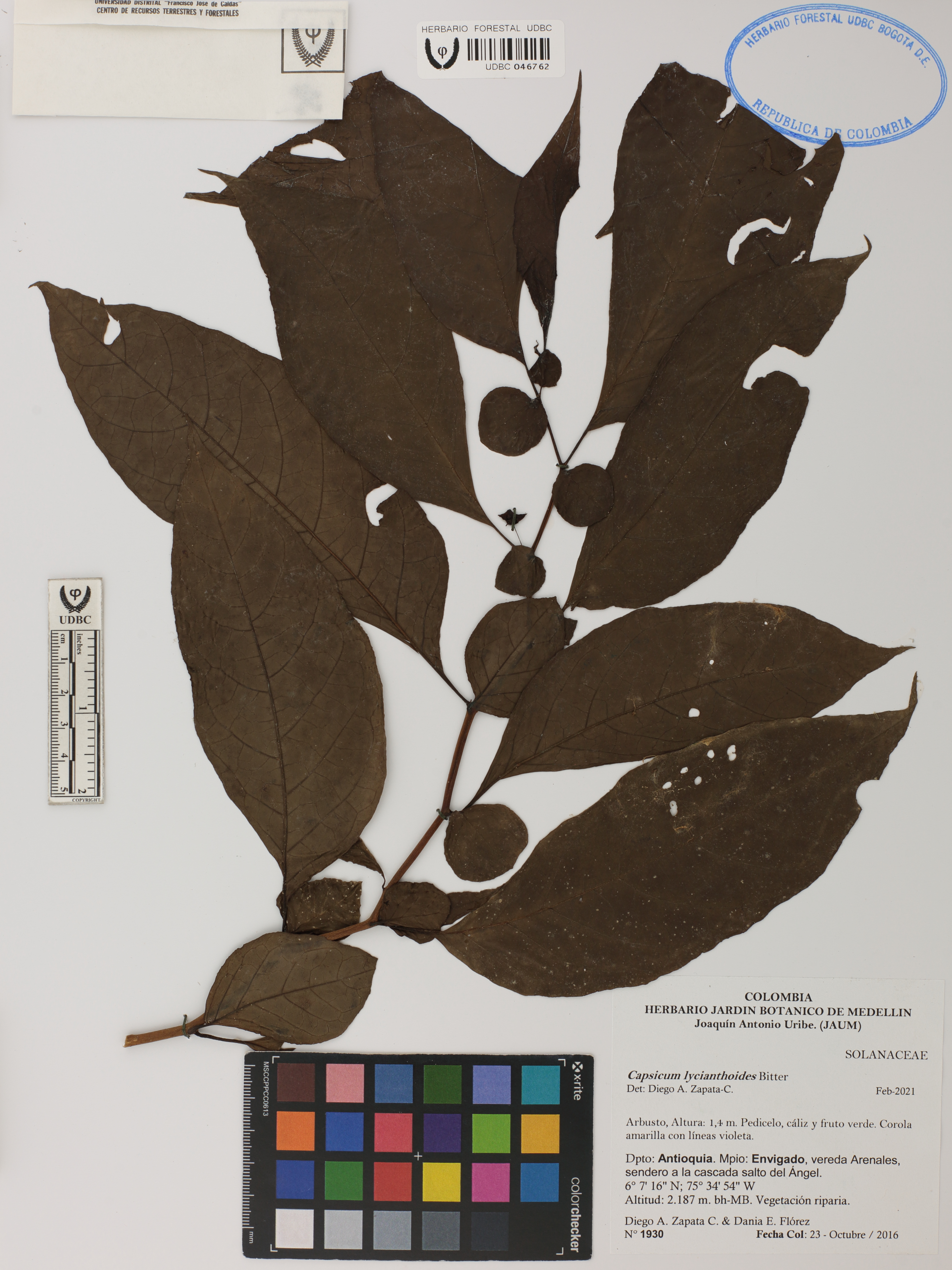 Fotografía del ejemplar Zapata-C., D. 1930, determinado como Capsicum lycianthoides en el año 2021