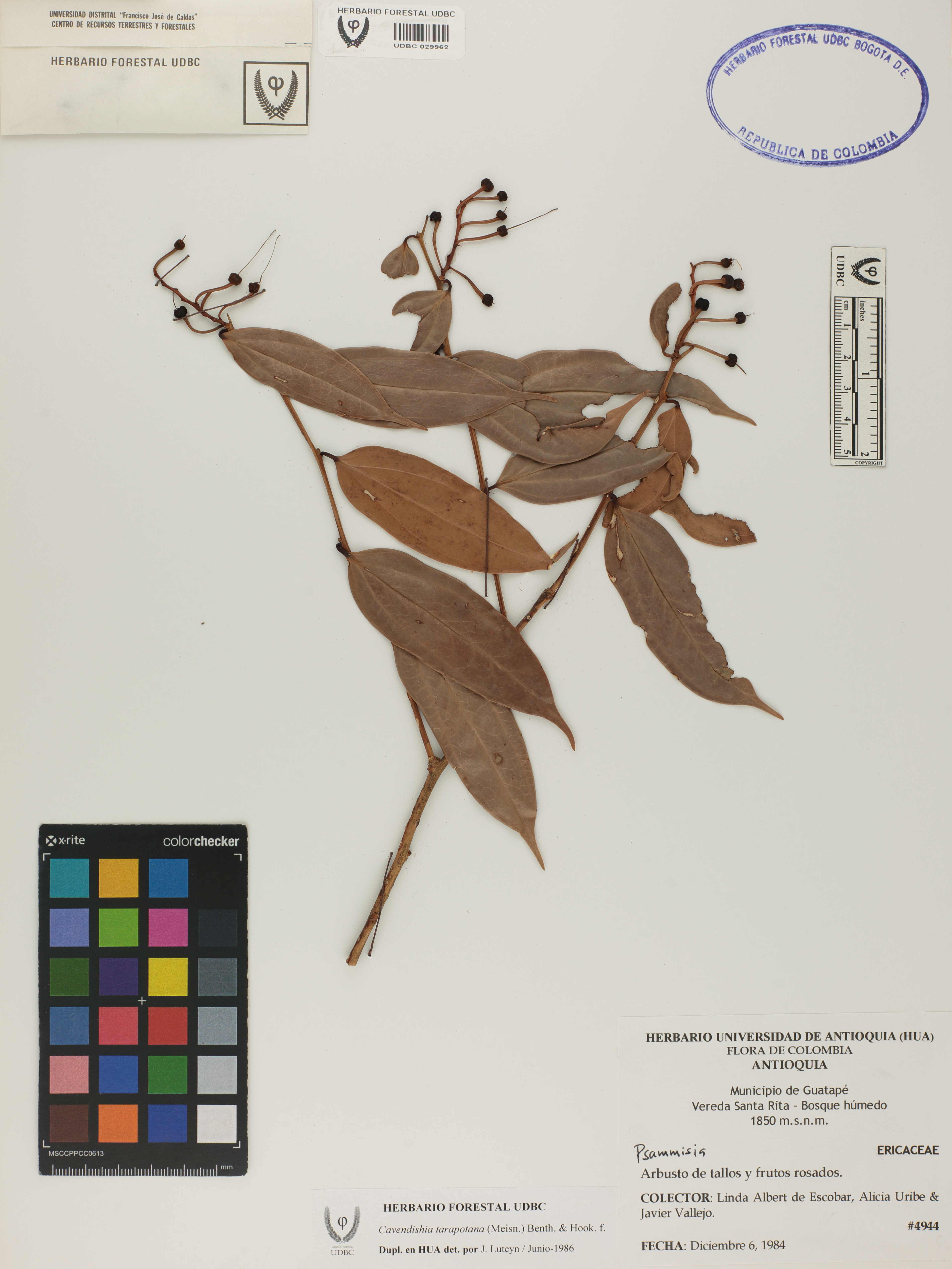 | dc.description | Fotografía del ejemplar Albert de E., L. 4944, determinado como Cavendishia tarapotana | |