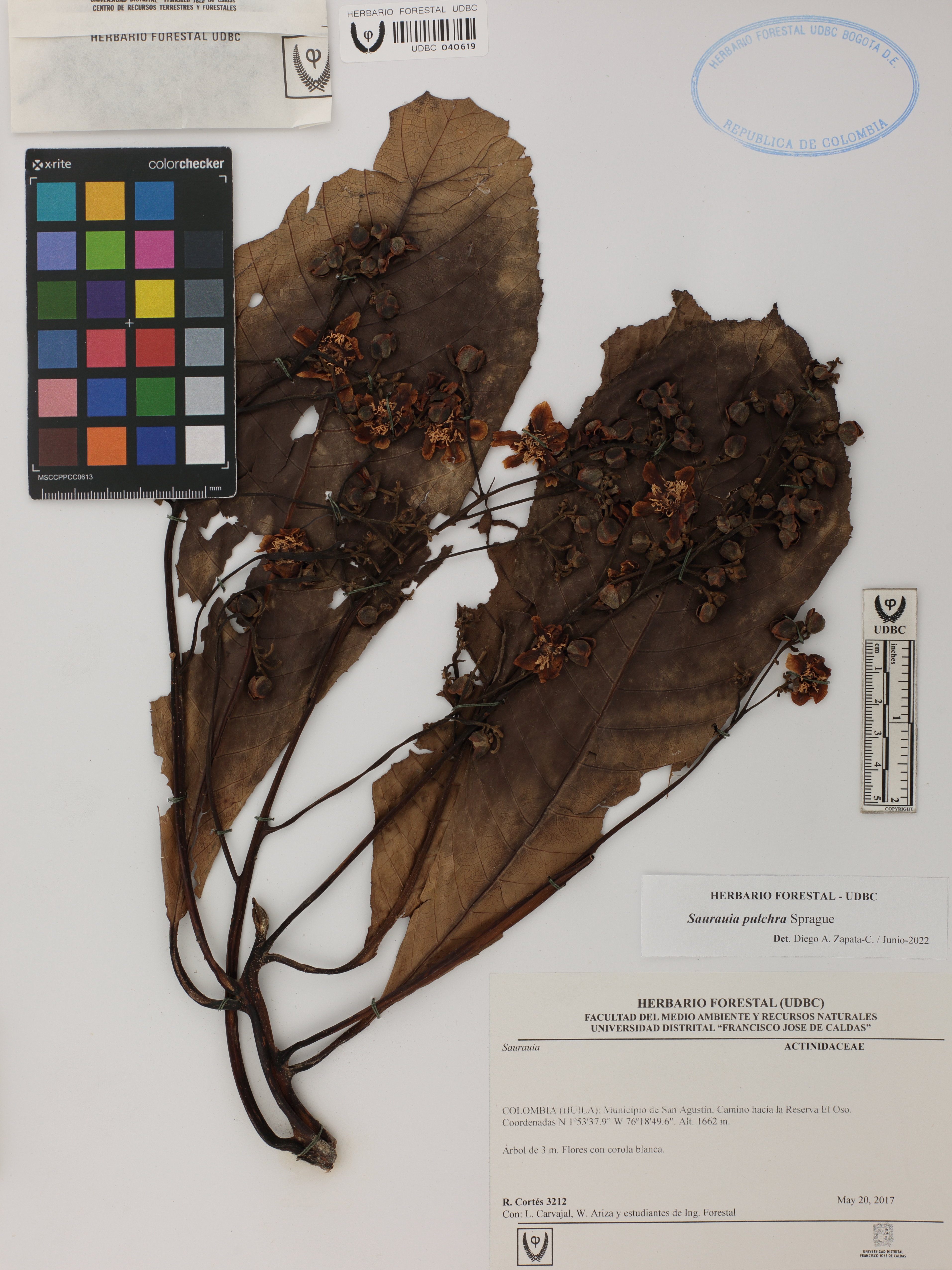 Fotografía del ejemplar Cortés, R. 3212, determinado como Saurauia pulchra en el año 2022