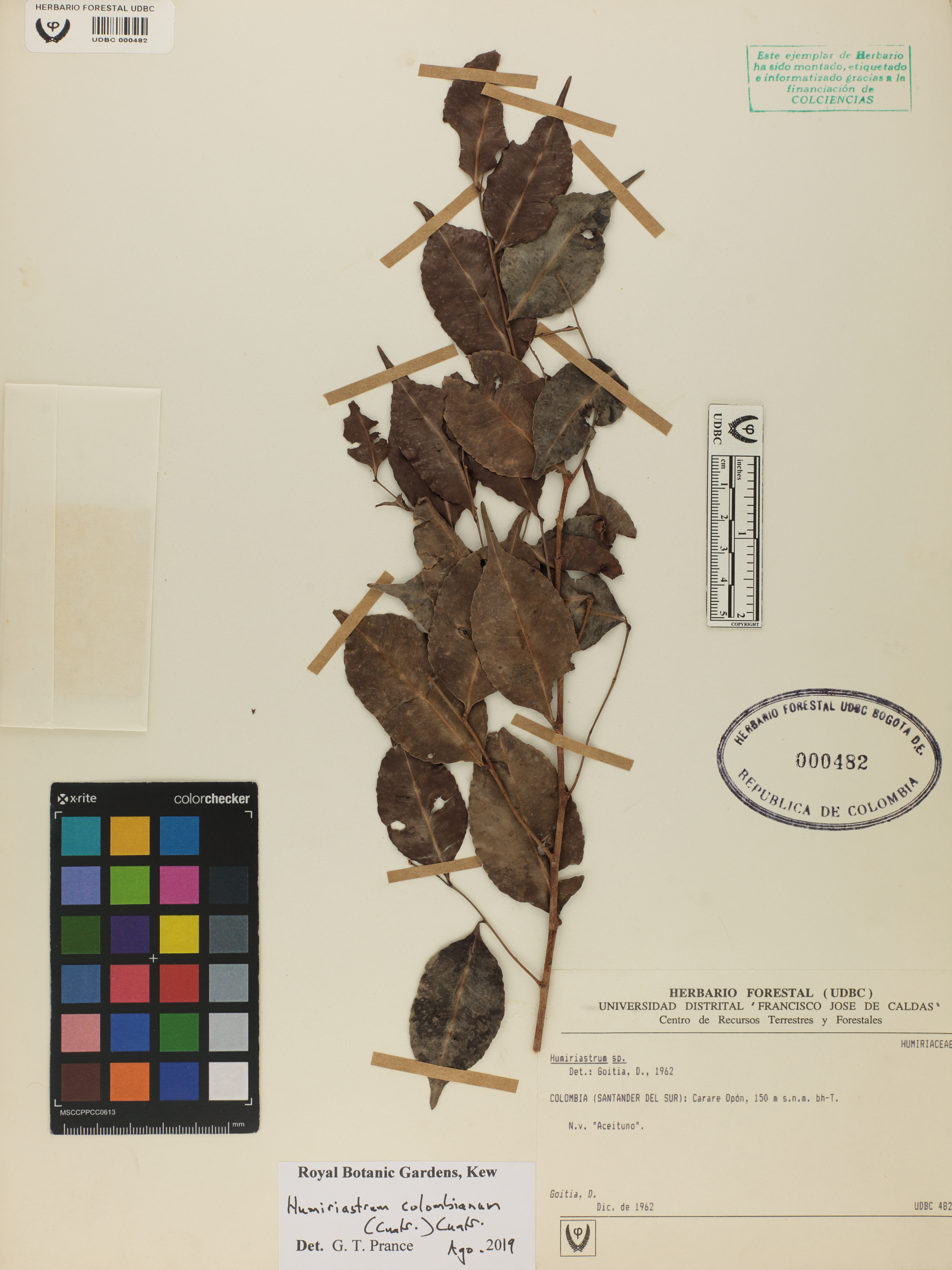 Fotografía del ejemplar Goitia, D., determinado como Humiriastrum colombianum en el año 2019
