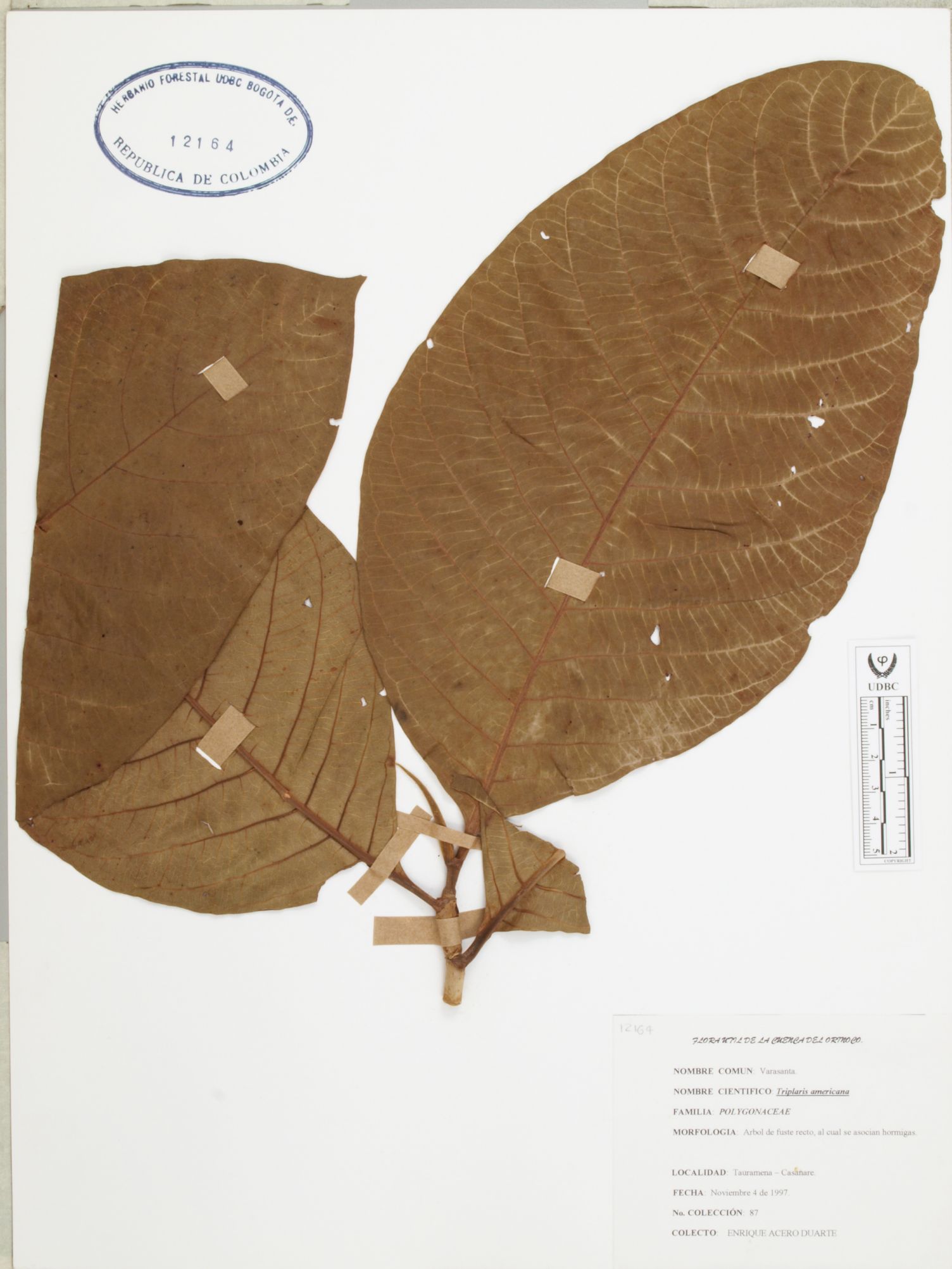 Fotografía del ejemplar Acero, E. 87, determinado como Triplaris americana
