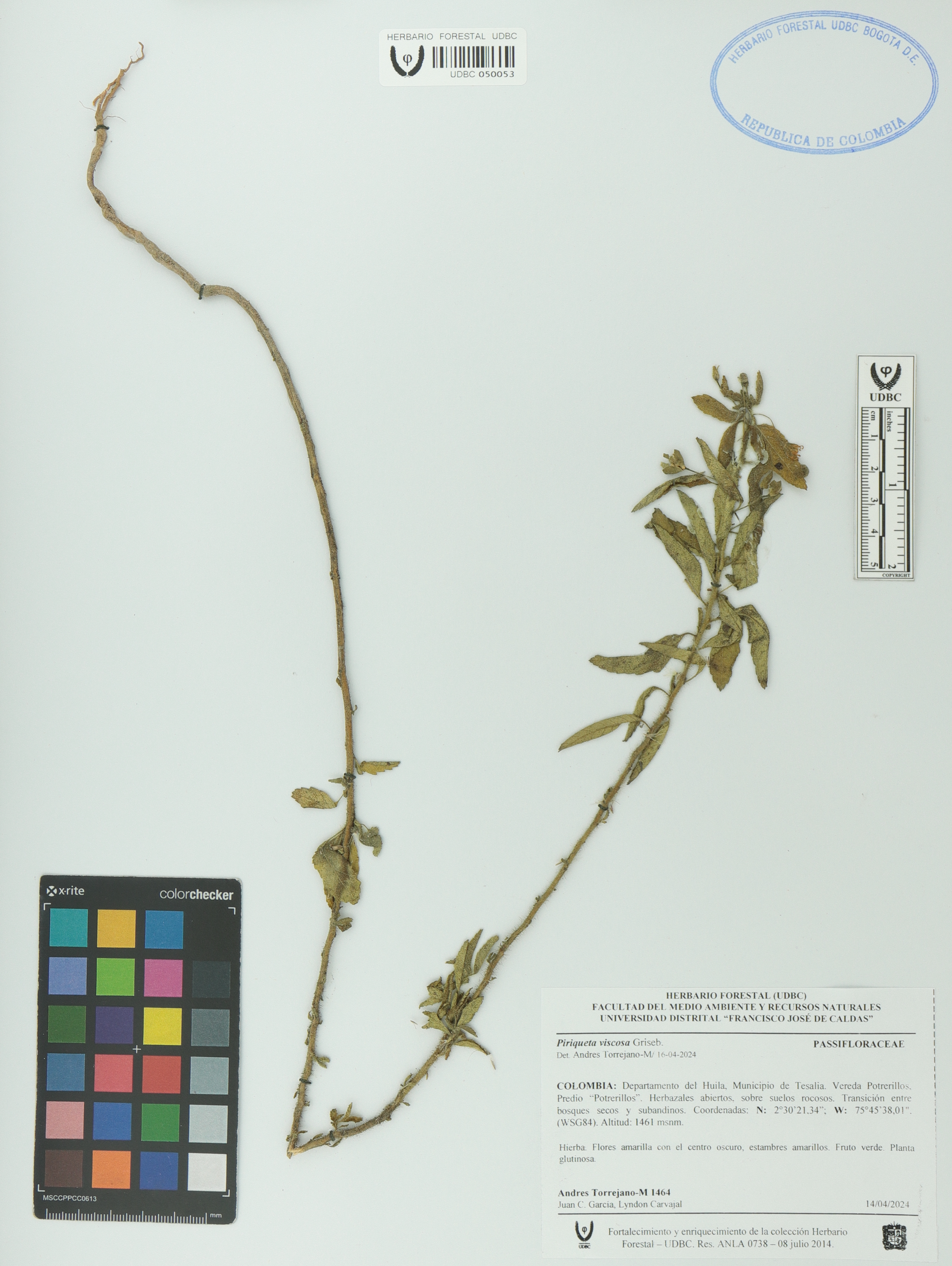Fotografía del ejemplar Torrejano-M., A. 1464, determinado como Piriqueta viscosa en el año 2024