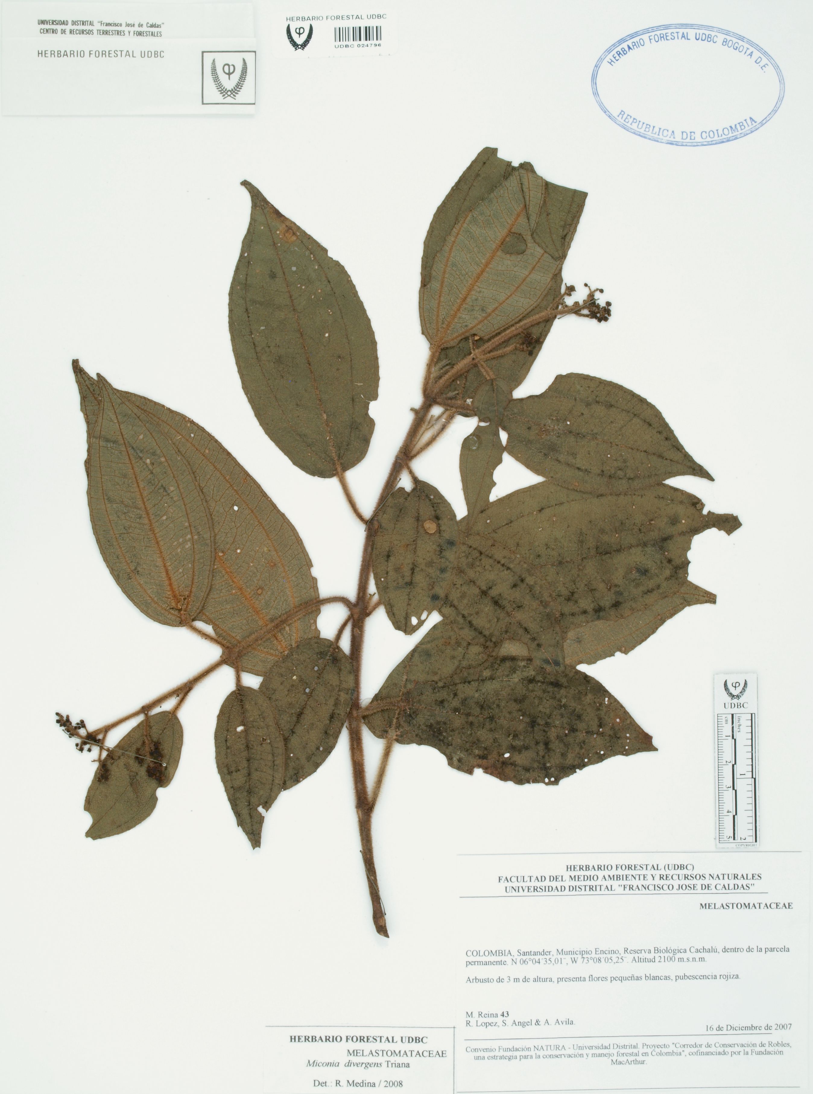Fotografía del ejemplar Reina, M. 43, determinado como Miconia divergens en el año 2008