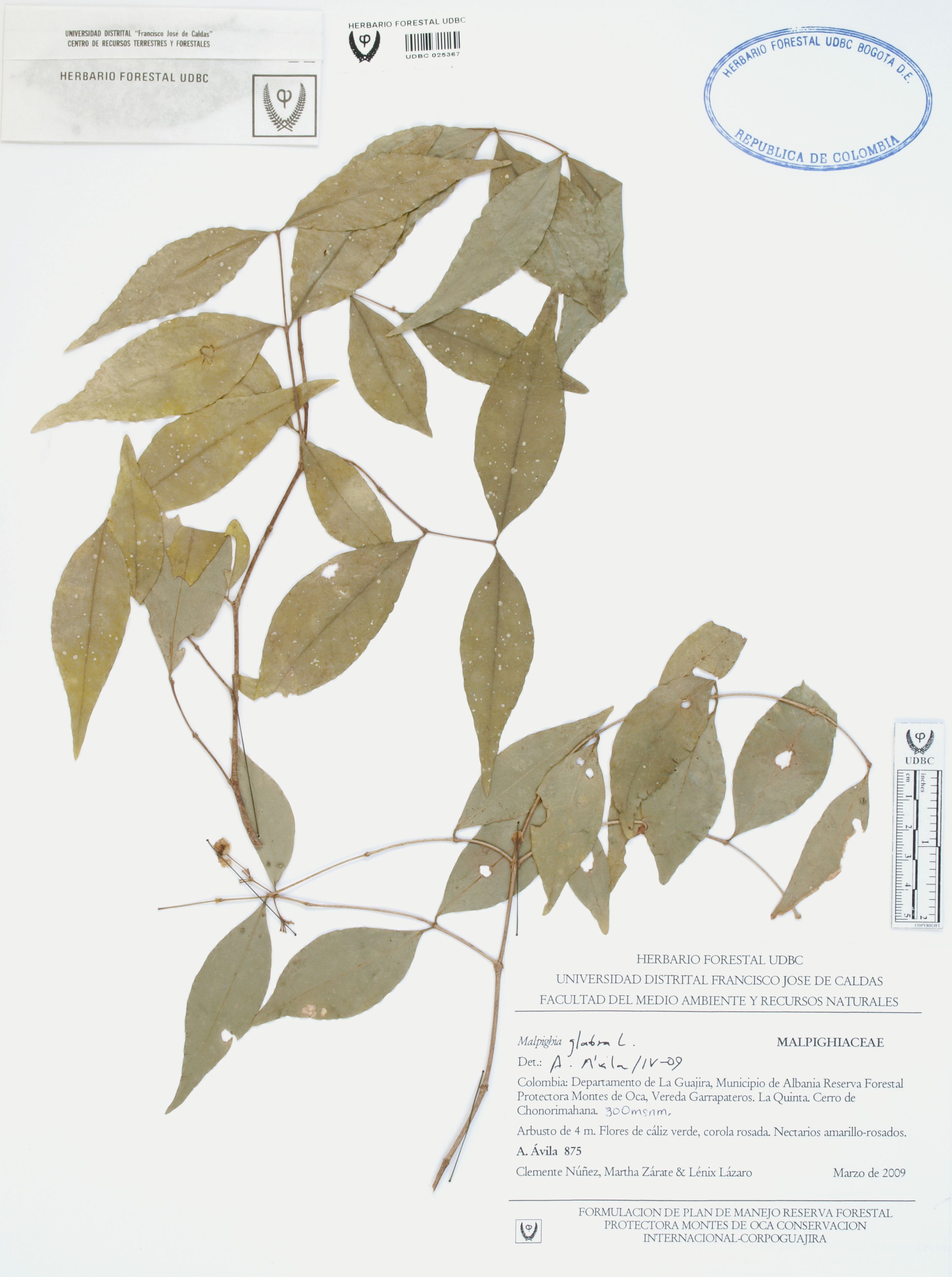 Fotografía del ejemplar Ávila, F. 875, determinado como Malpighia glabra en el año 2009