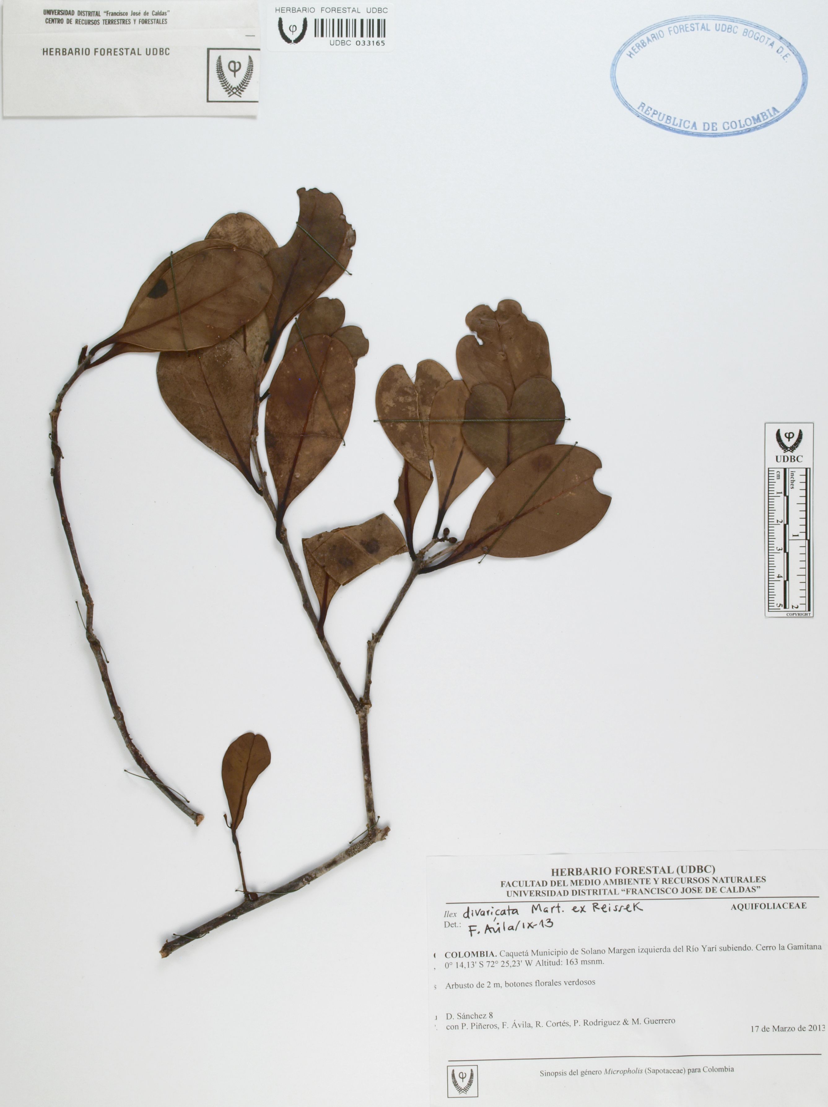 Fotografía del ejemplar Sánchez, D. 8, determinado como Ilex divaricata en el año 2013
