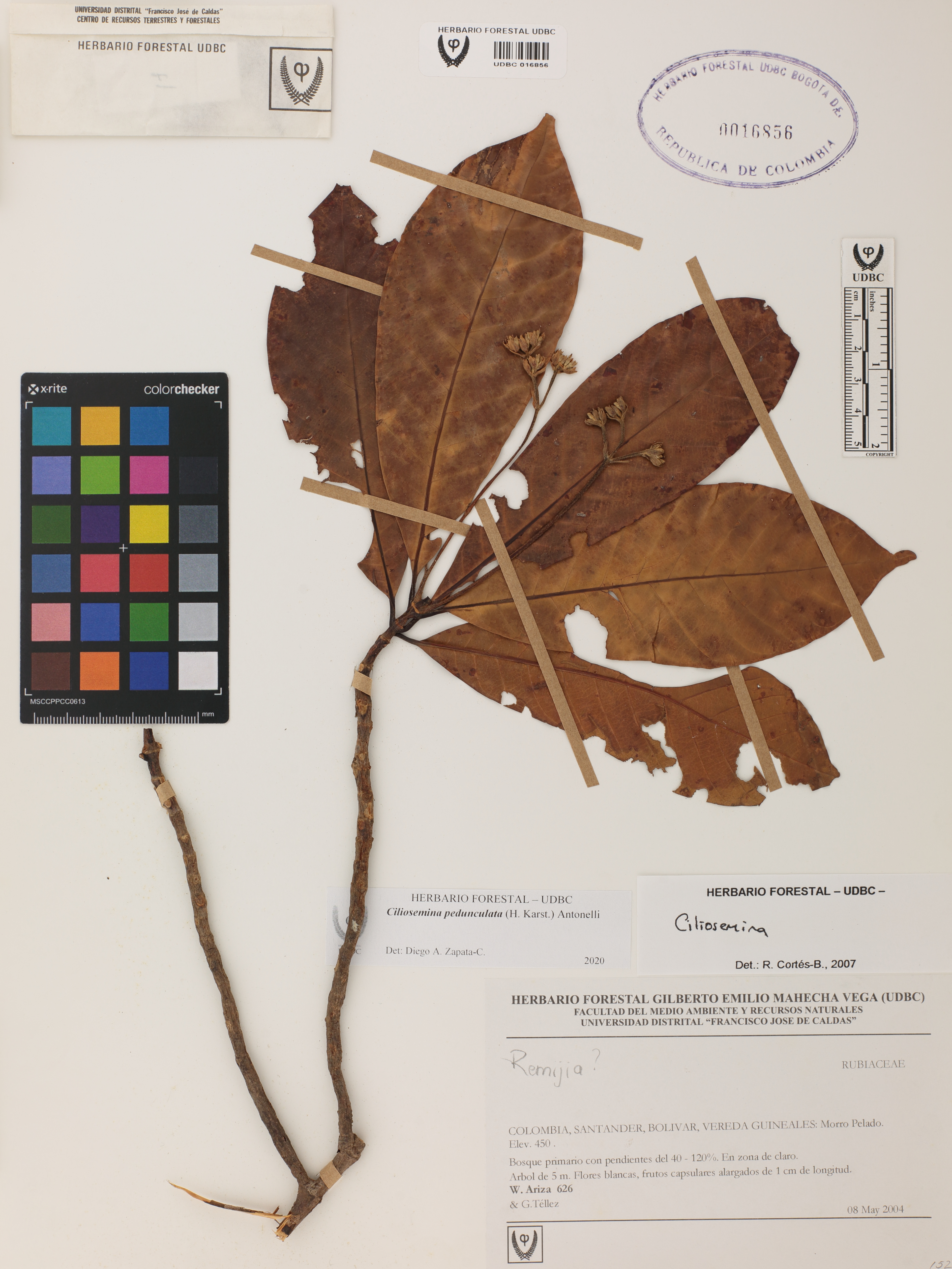 Fotografía del ejemplar Ariza, W. 626, determinado como Ciliosemina pedunculata en el año 2020